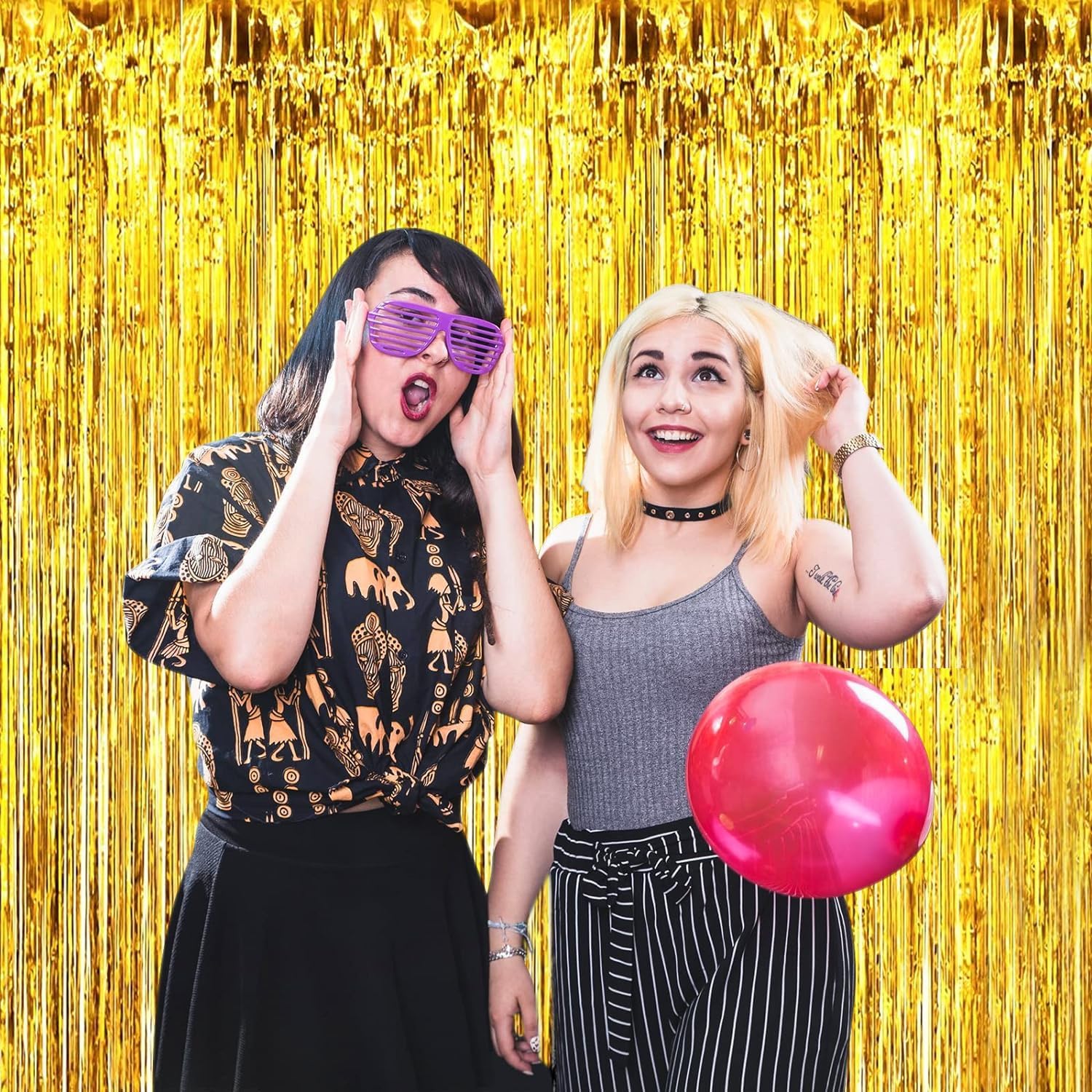 - Easy to Install: made of metallic foil lightweight, Each foil fringe curtain has double-sided tape on the back, table skirts are equipped with an adhesive strip on the top, easy to use. you just need to tear off the tape and install the backdrop on the wall, door, window, etc. It can be reused many times, great for your party venue decoration.
