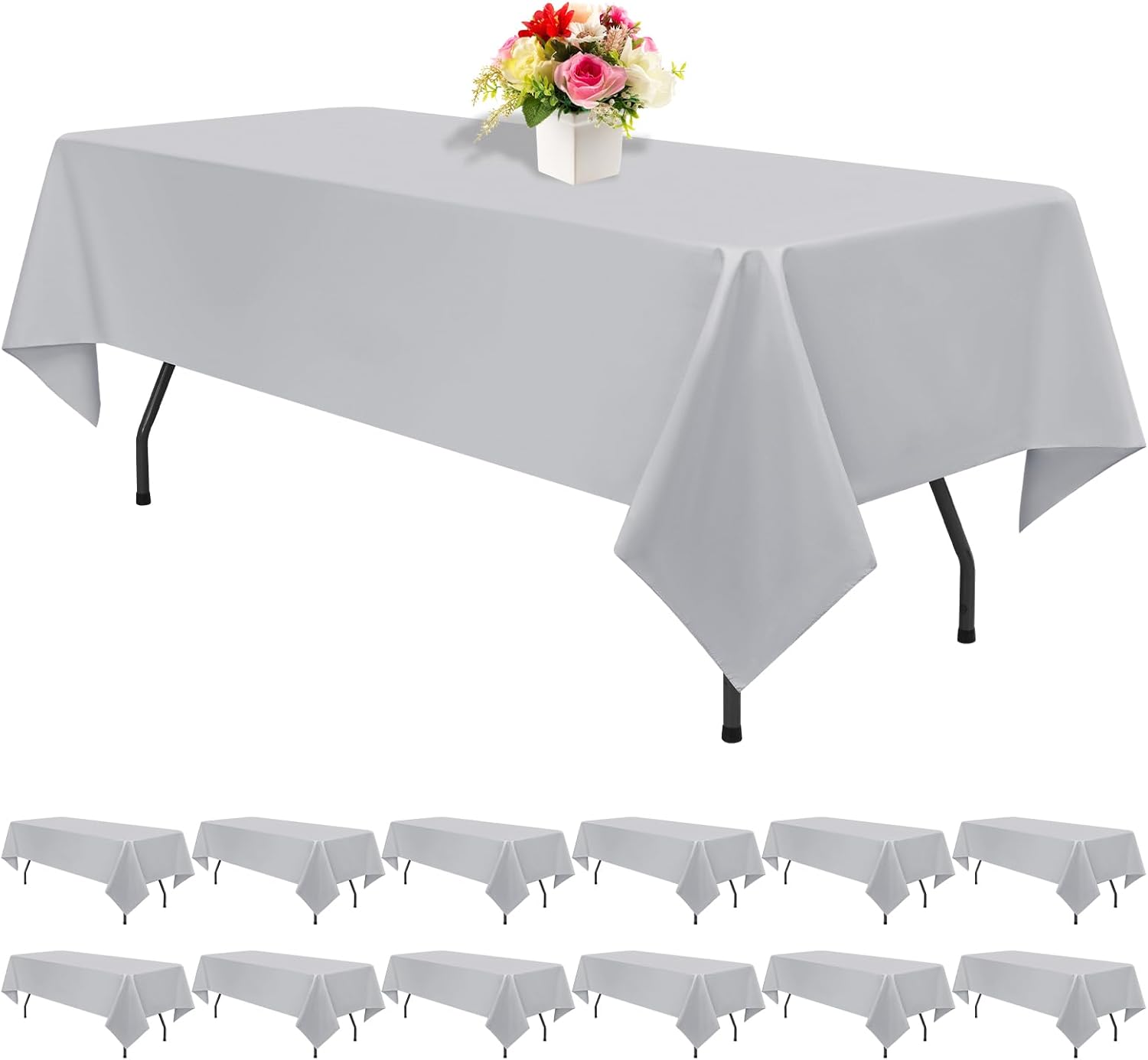 12 Pack Light Grey Tablecloths for Rectangle Tables 60 x 126 Inch Polyester Tablecloth 8 Foot Rectangle Table Cloth Wrinkle Resistant Washable Fabric Table Cover for Party Wedding Banquet Events
