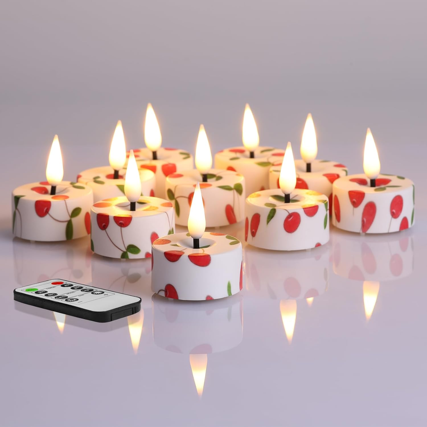 - Attractive Decor & Gift Option - this unique set of red cherries pattern LED tealights is perfect for daily home decor, also can be placed in your favorite tea candle holders or given as gifts