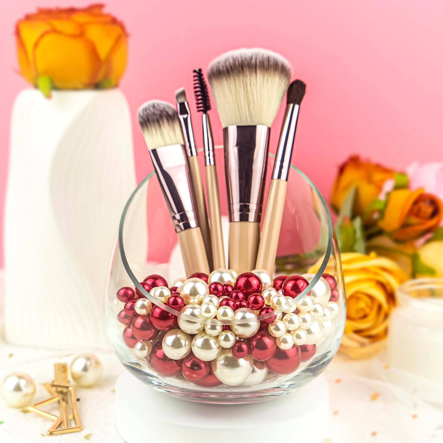 - Great decoration: Use these beads to organize and display makeup brushes, lipsticks, and other accessories. They are also ideal for creating personalized home decor, clothing embellishments, and unique gifts for loved ones. Their elegant design will elevate any space or project.