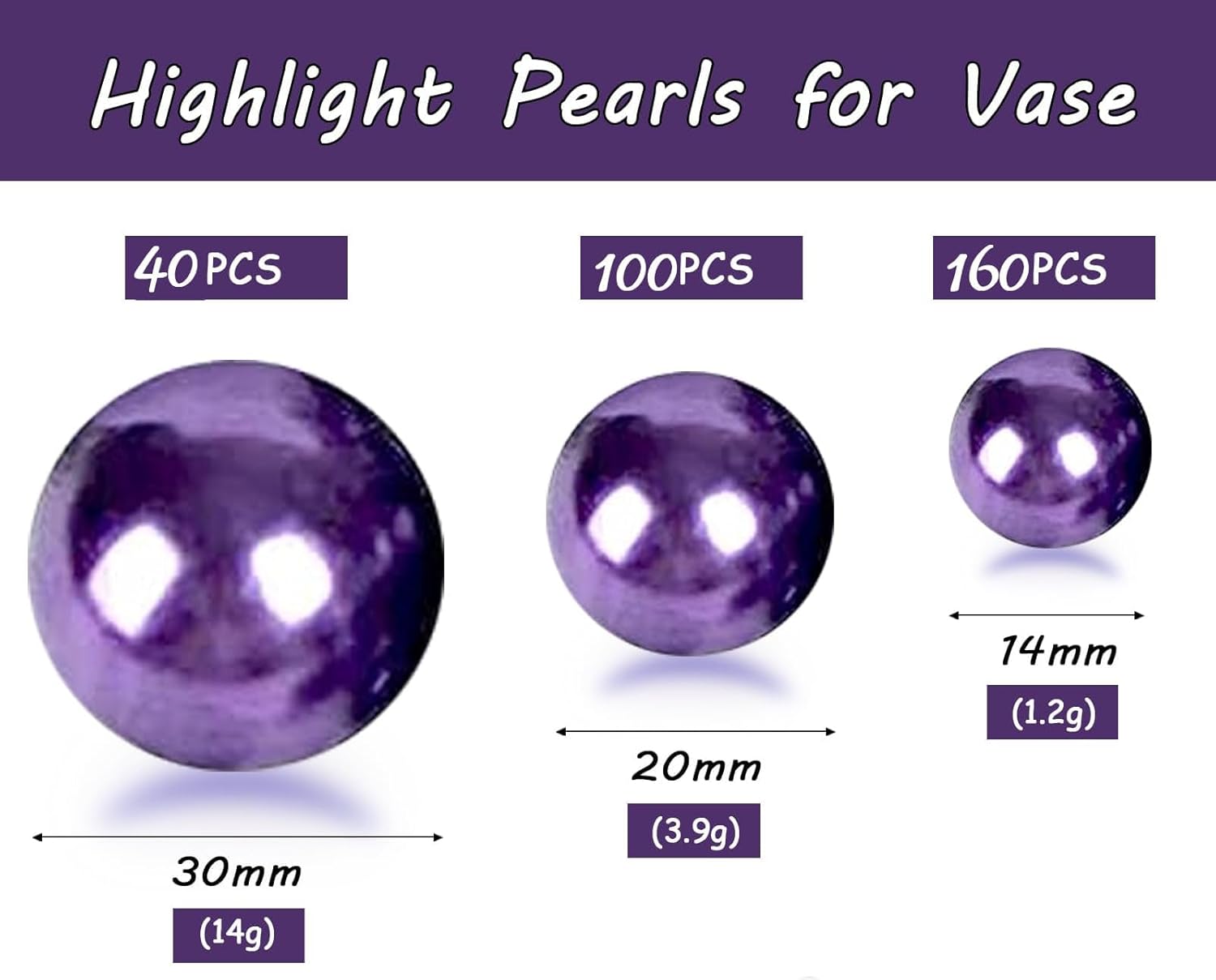 300Pcs Dark Purple Polished No Hole Faux Pearl Beads for Vase Filling Decorations, Plastic Pearls Vase Fillers, Table Scatters, Wedding Centerpiece, Home Decor, 8/14/20 mm