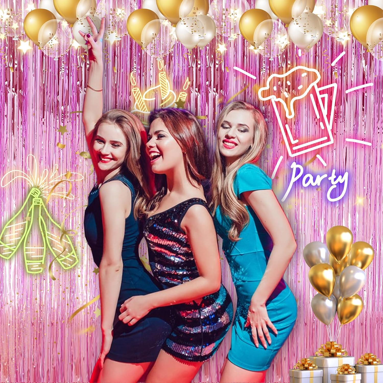 - birthday party birthday backdrop Wonderful Decoration:This foil curtain backdrop is made of tinsel with shiny surface laser spangle-side on your wall to create a shimmering streamer curtain laser spangle