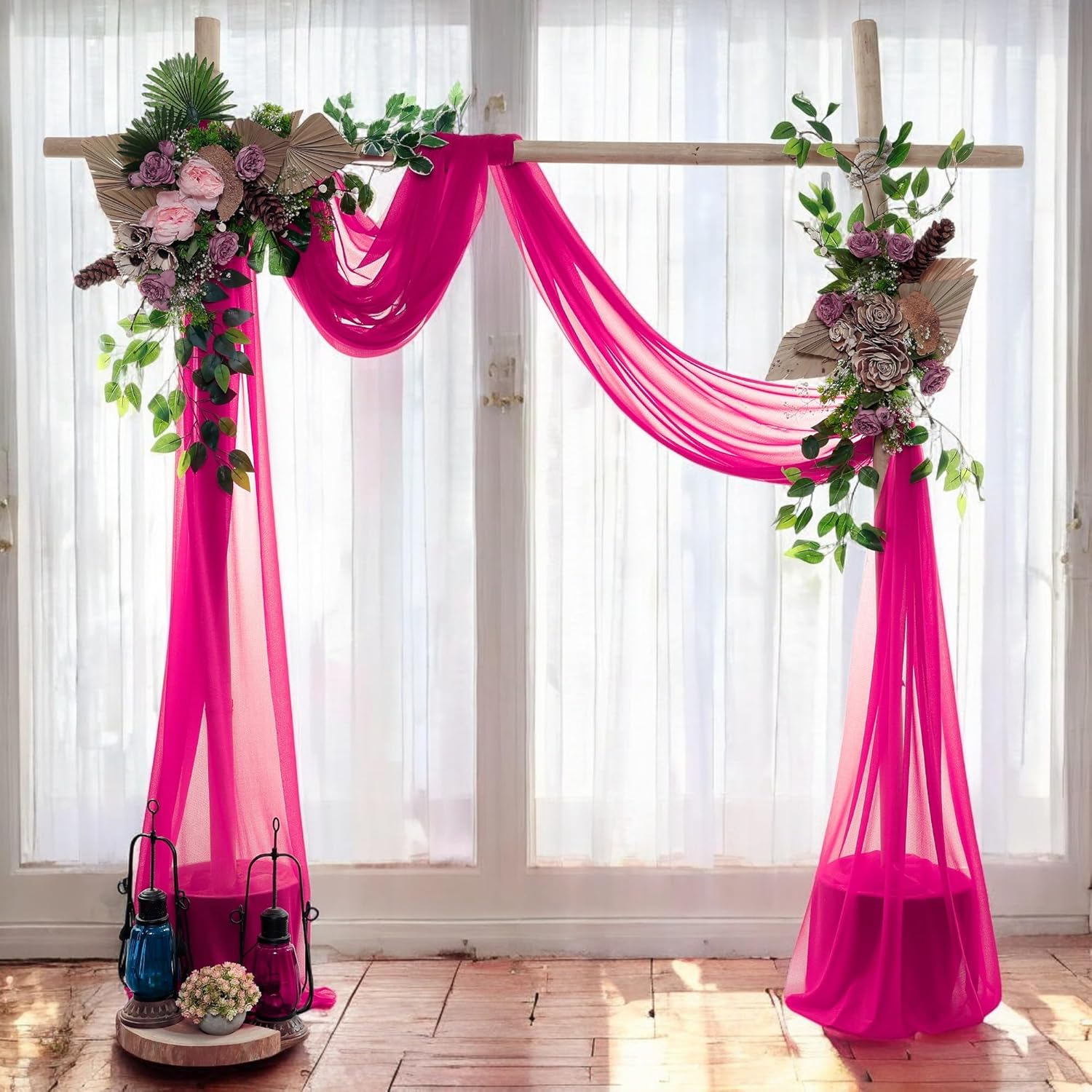- MULTIPURPOSE DRAPING FABRIC FOR WEDDING : Beautiful wedding arch decorations is perfect for wedding arches, ceremony backdrop, photo backgrounds, and even home interior decoration to add a touch of purity.You can hang some balloon garland, happy birthday banners, glitter star garland, window curtain lights, artificial flowers with stem to add an elegant and romantic vibe. Best wedding decoration gift.