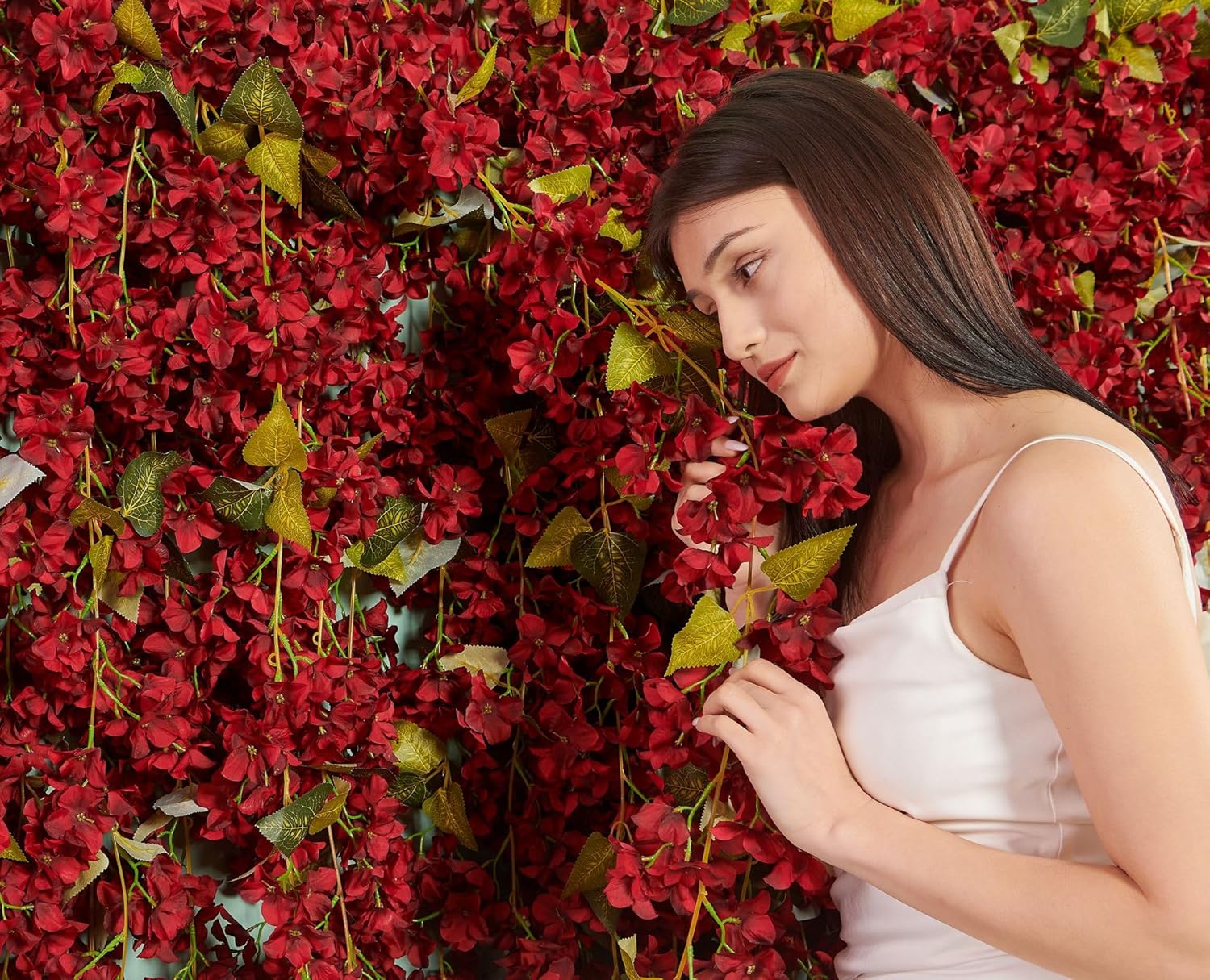Flower Garland, Artificial Hydrangea Vine Flowers, Hanging Fake Hydrangeas Vine for Room Anniversary Wedding Birthday Christmas Wall Arch Decor, 2 Pcs, Floral Garland, Red Flower
