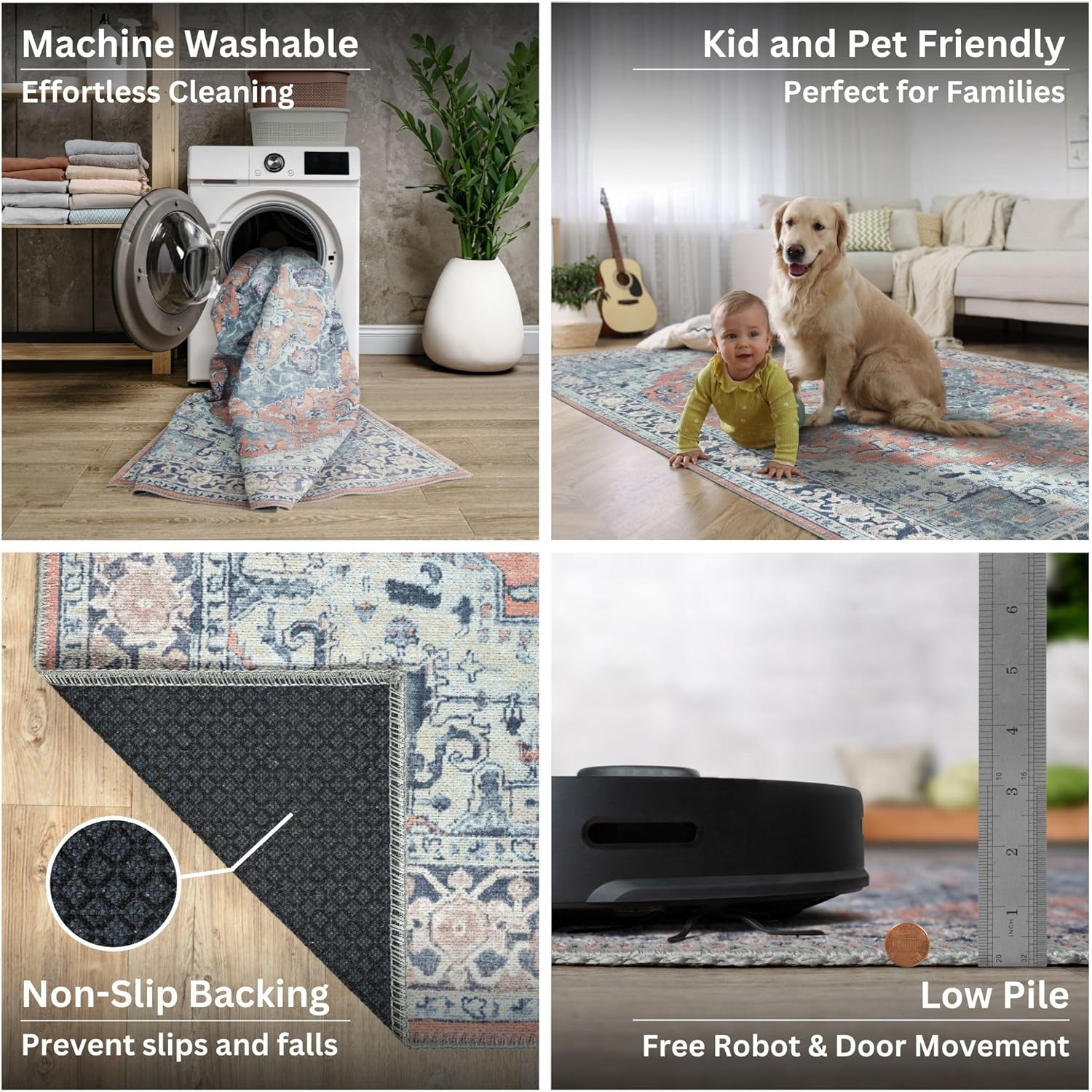- MACHINE WASHABLE: Machine wash on delicate cycle (do not use bleach) at 85°F (30°C) and line dry or dry on air-only cycle without heat. Vacuum regularly and spot clean small stains. This easy to clean rug is perfect for families with kids and pets, and for high traffic areas.