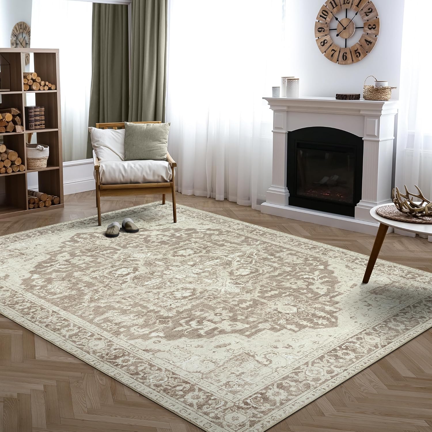 Bloom Rugs Washable Non-Slip 8' x 10' Rug - Light Brown Traditional Medallion Area Rug for Living Room, Bedroom, Dining Room, and Kitchen - Exact Size: 8' x 10'