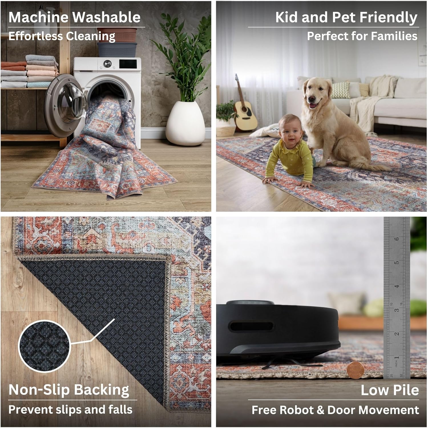- EASY TO SETUP AND NON-SLIP: This one-piece machine washable rug with non-slip backing attached eliminates any additional setup. Simply unfold and lay flat upon arrival in the desired space. Non-slip backing prevents the rug from moving or sliding without the need for additional rug pad or grippers.