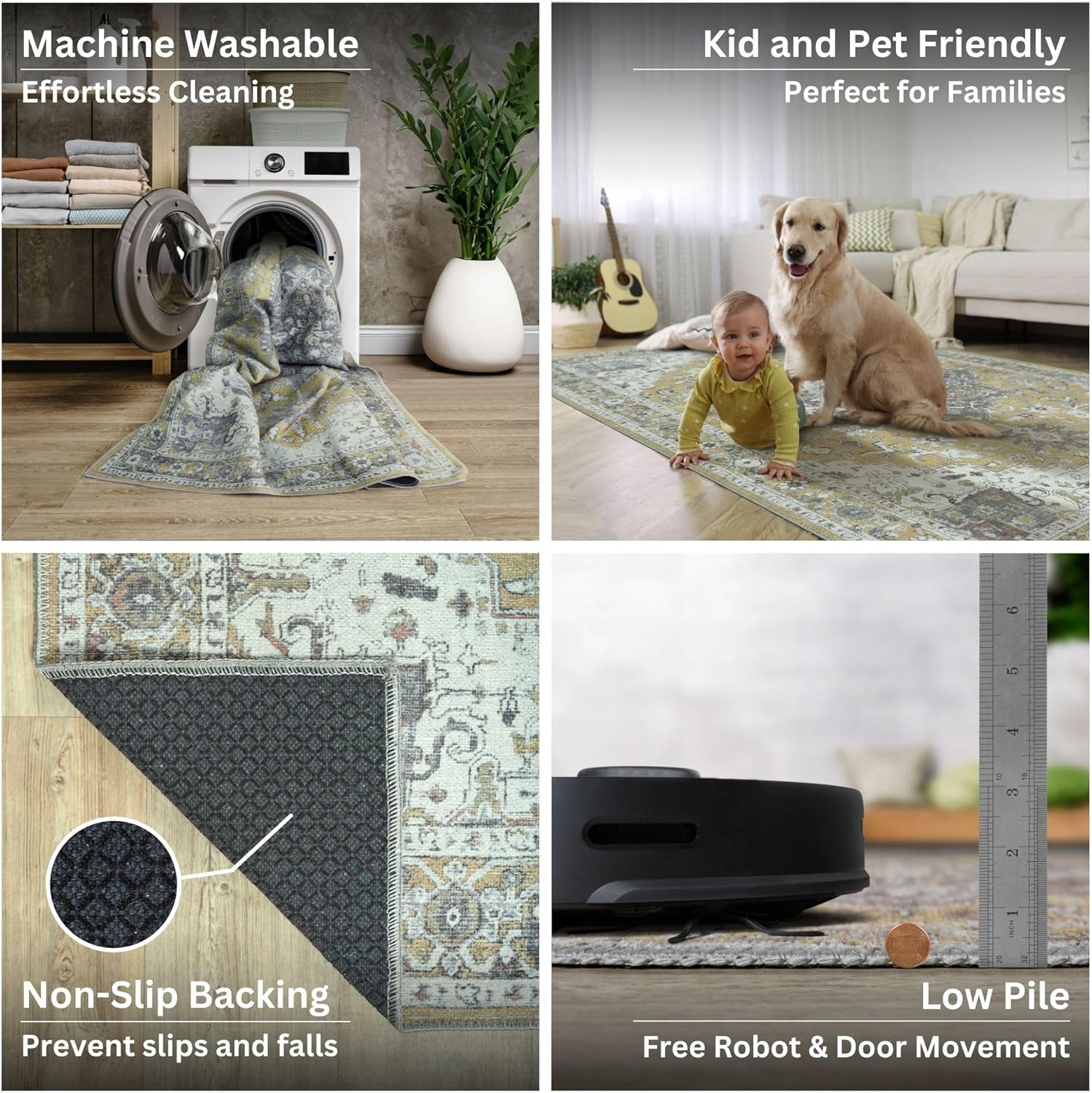- EASY TO SETUP AND NON-SLIP: This one-piece machine washable rug with non-slip backing attached eliminates any additional setup. Simply unfold and lay flat upon arrival in the desired space. Non-slip backing prevents the rug from moving or sliding without the need for additional rug pad or grippers.