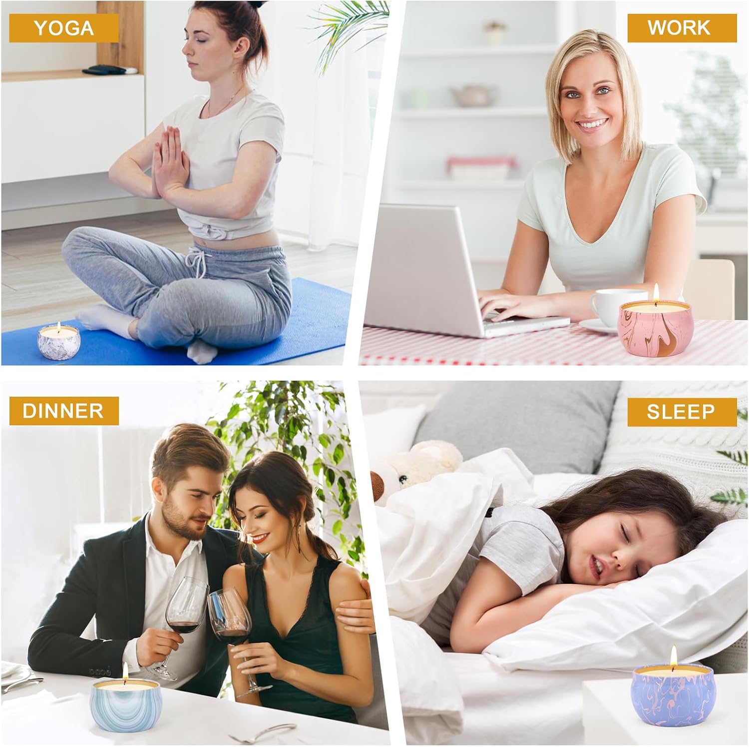 - 🌸【4-Pack Scented Candles】This candle gifts set gift for women includes Lemon, Vanilla, Bergamot, Spring, a total of 4 kinds scents. This candle for home scented containing a variety of comman scents will satisfy you for daily needs, ideal for working, reading, yoga, spa, bathing, dating, honeymoon, sleeping and office.