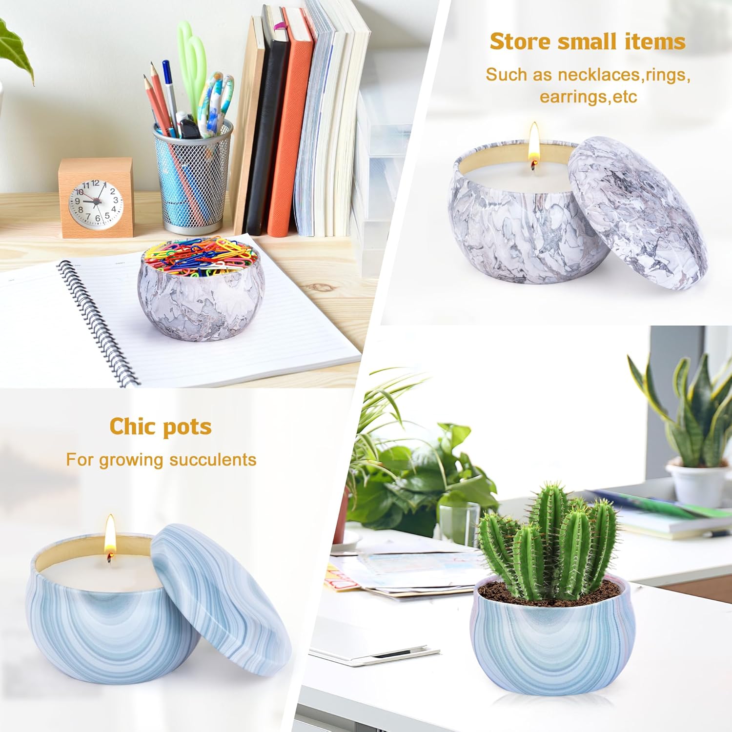 - 💝【Beautiful Jar】This aromatherapy candle is packed in a beautiful round jar with beautiful marble element patterns on it, fully demonstrating your high taste! When you run out of soy wax, the empty jars can also be used to store earrings, rings, necklaces and other small items, or even become delicate containers for growing small plants.