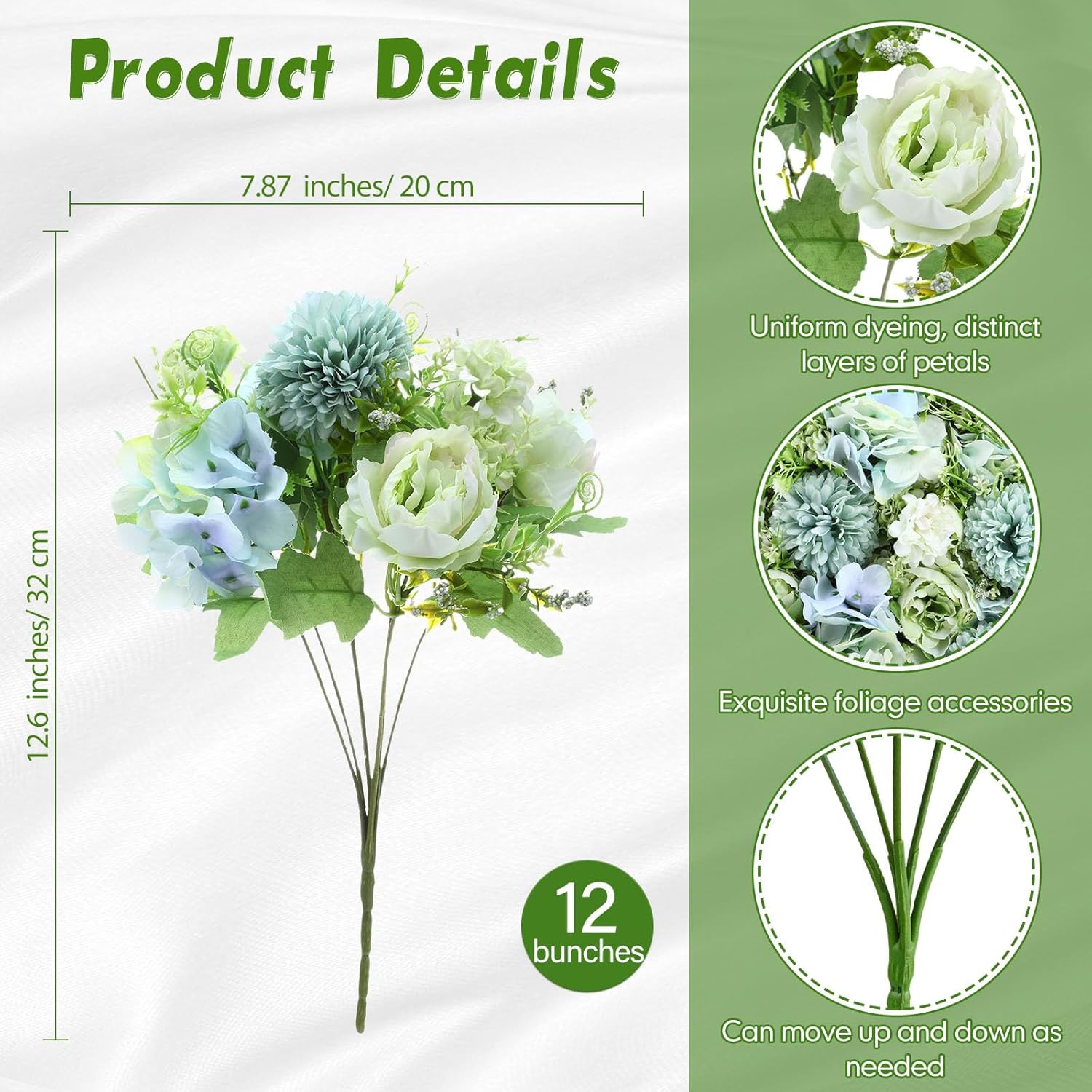 - Built to Last: our artificial realistic flowers are designed for beauty and durability; They are crafted from silk cloth, providing longevity and maintaining freshness; Tips: Please pay attention to the size before placing an order