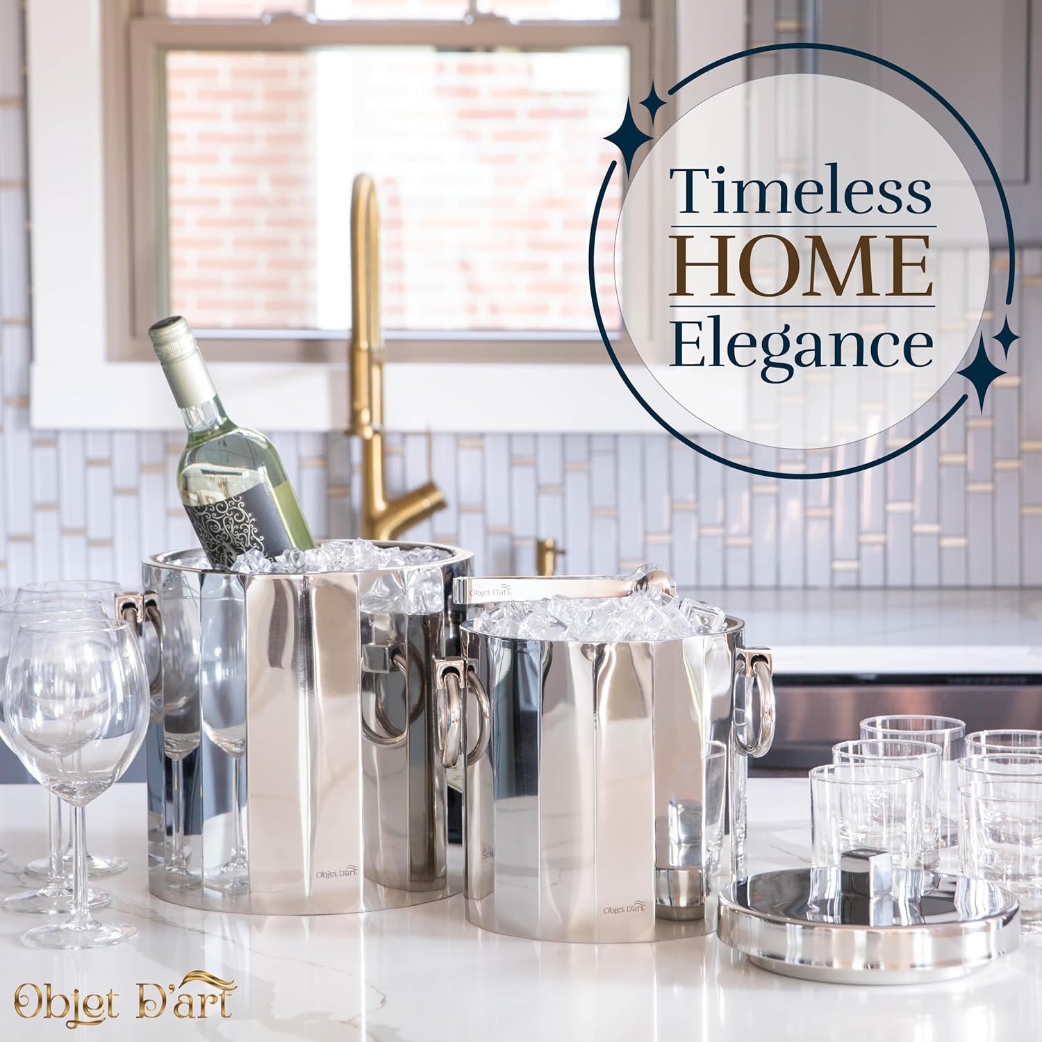 - PARTY ICE BUCKET: An essential tool for any party or event where drinks are served, this metal ice bucket has a polished finish and comes with a matching set of tongs. Not only does it keep drinks cold and refreshing, it adds a touch of elegance and sophistication to the surroundings.