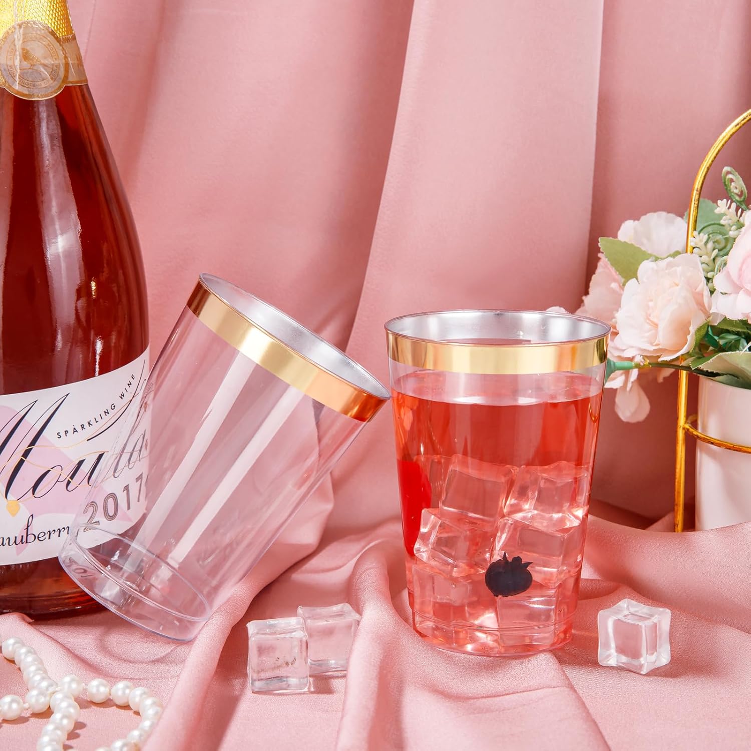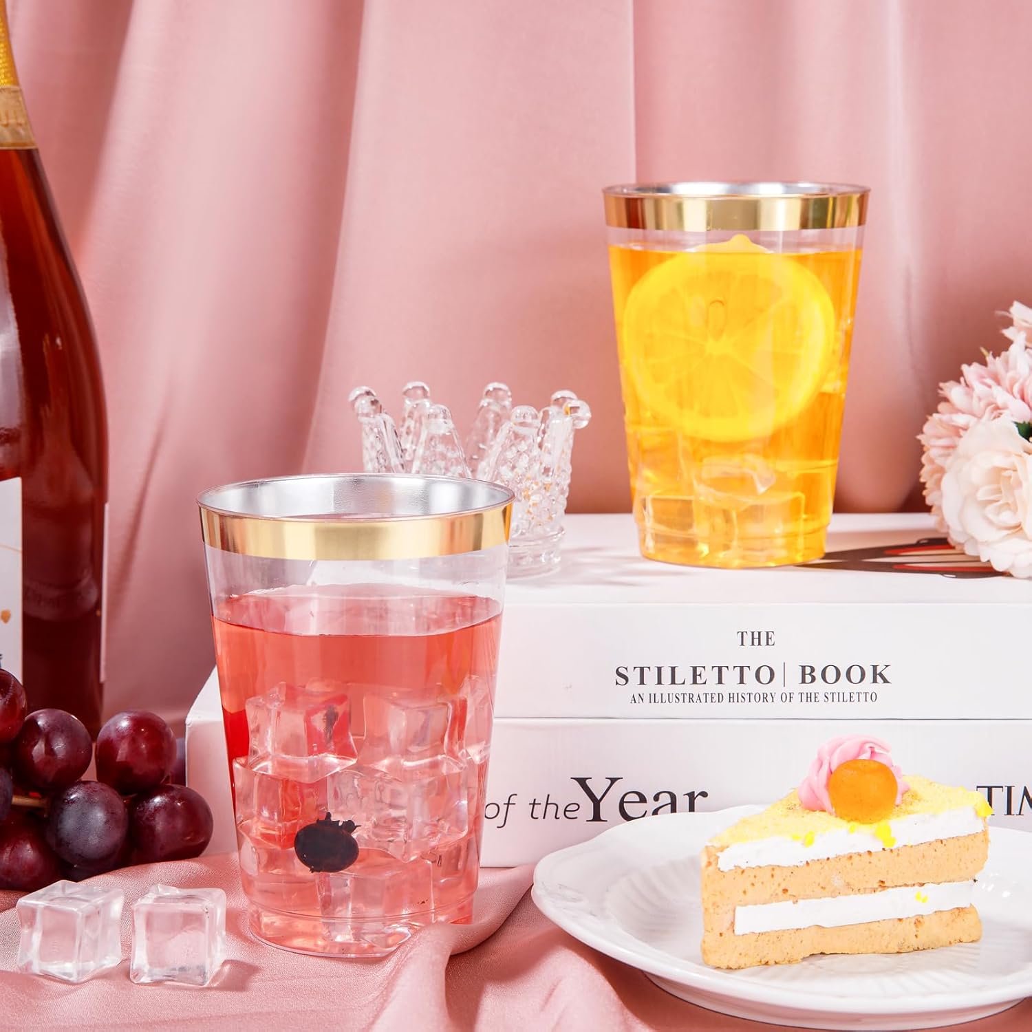 - Elegant Appearance: The 12 oz disposable clear plastic cups with gold trim are crystal clear all over, presenting a high-end appearance for a good clear visibility. The gold appearance and luster make these gold disposable cups look more upscale in any setting.