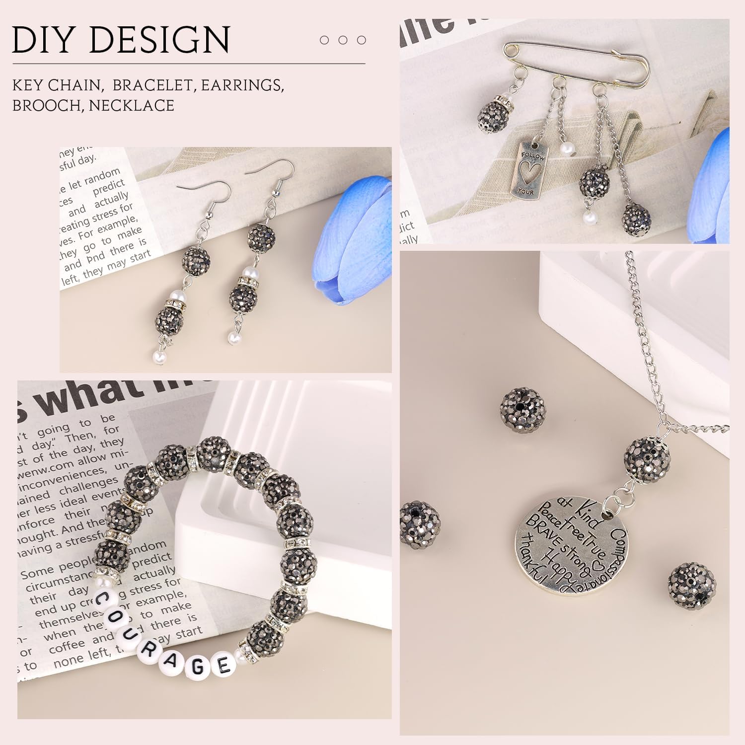 150 pcs 10mm Rhinestone Beads for Jewelry Making, Hematite Shiny Round Shamballa Disco Beads Bulk, Sparkle Crystal Clay Christmas for Bracelet Baseball Necklace Earring Crafting and DIY