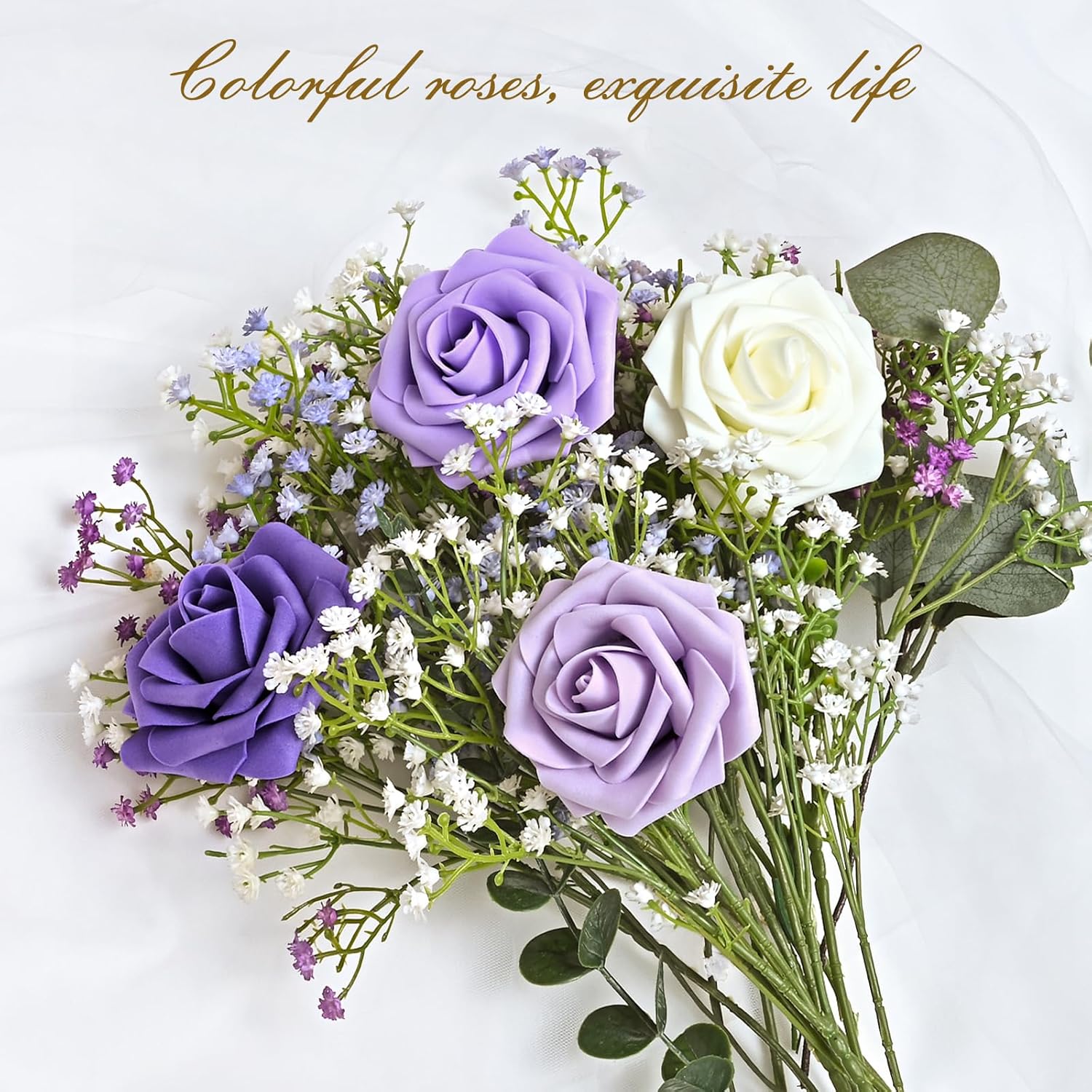 - Kindle Your Creative Flames: The box includes 36 purple series roses (3" flower head, 8" stem) and 8 green rose leaves, perfect for an array of DIY crafts. Whether creating wedding bouquets, graduation or birthday party ornaments, baby shower decorations, or cake adornments, our faux roses add a touch of class to every important moment.