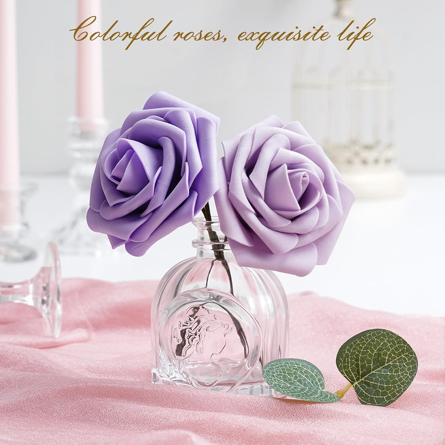 - Kindle Your Creative Flames: The box includes 16 purple series roses (3" flower head, 8" stem) and 4 green rose leaves, perfect for an array of DIY crafts. Whether creating wedding bouquets, graduation or birthday party ornaments, baby shower decorations, or cake adornments, our faux roses add a touch of class to every important moment.
