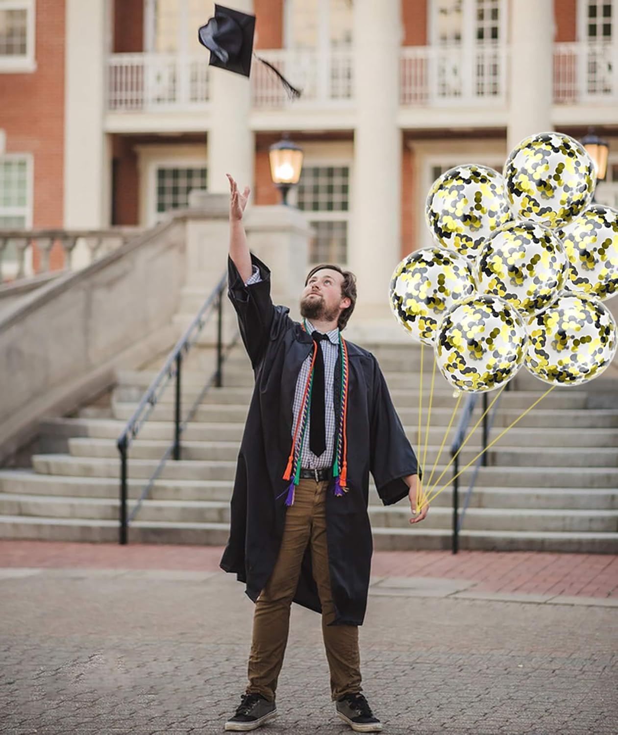 - YOU WILL GET: The Gold Black balloons set including 50 pcs confetti party balloons. all of them filled with Gold Blacken paper confetti dots already put in the transparement latex balloons. they can both hold helium and air. perfect for decoration any party.