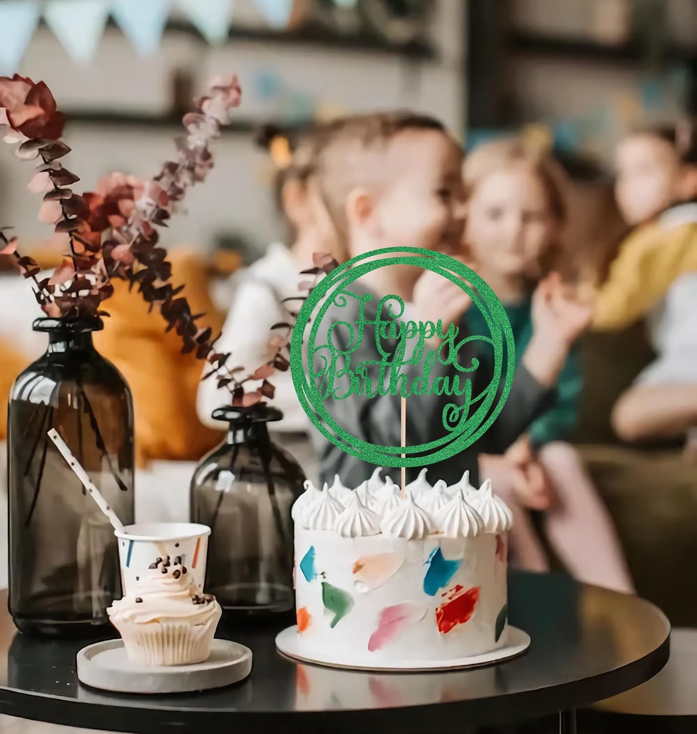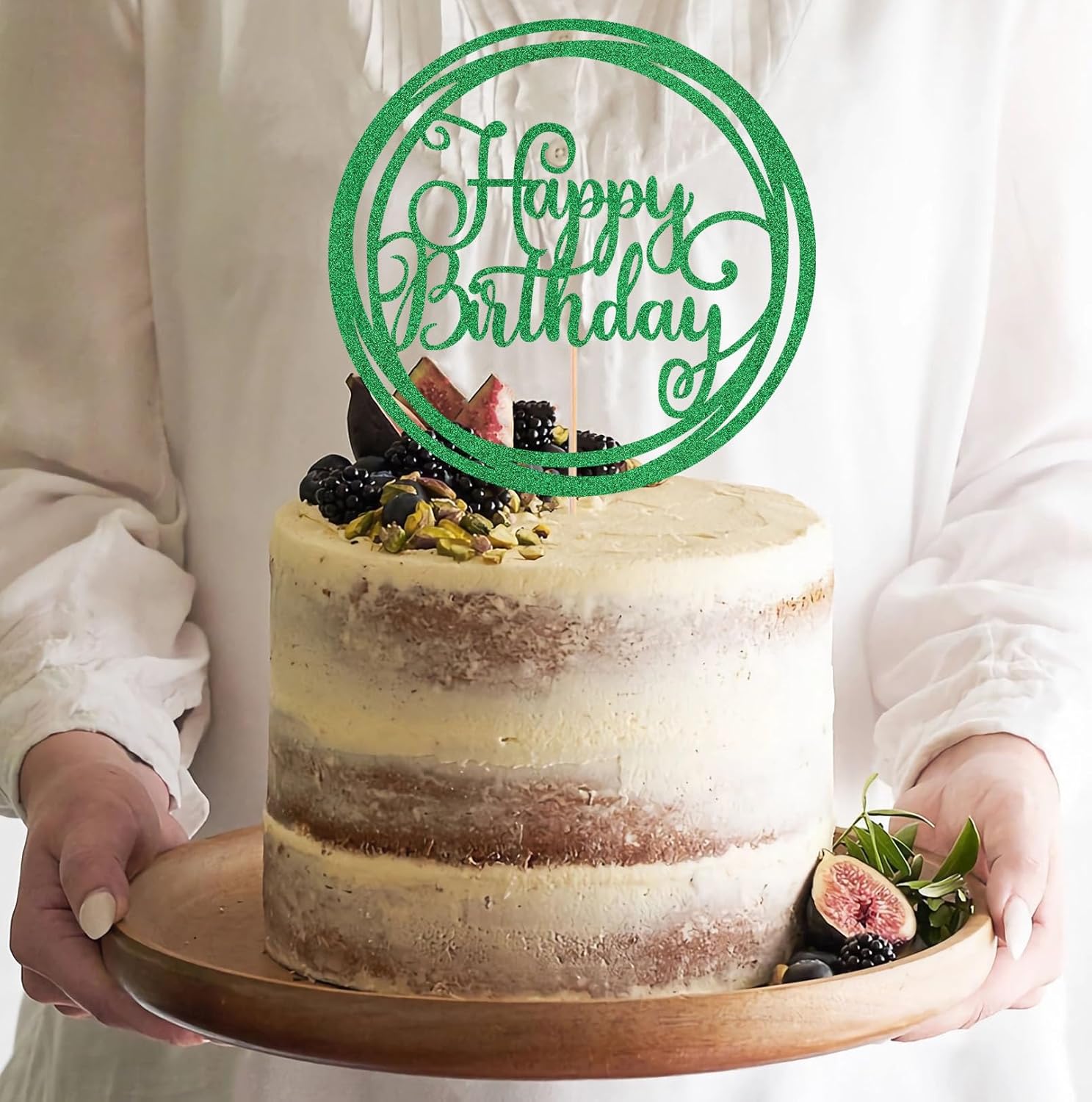 Happy Birthday Cake Topper - Green Glitter Happy Birthday Cake Decoration Supplies for Children or Adults - Happy Birthday Cake Bunting Decor, Photo Booth Props