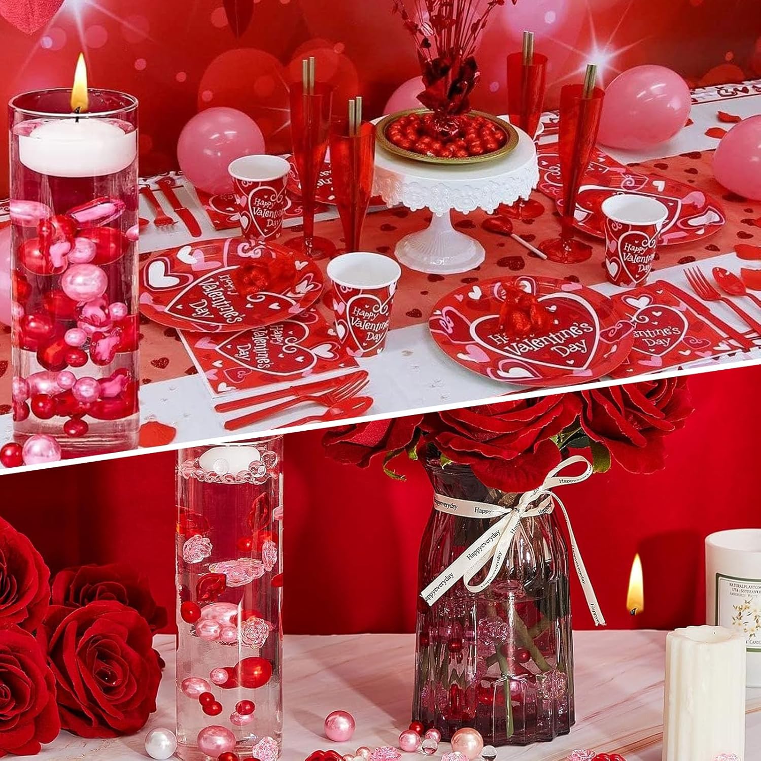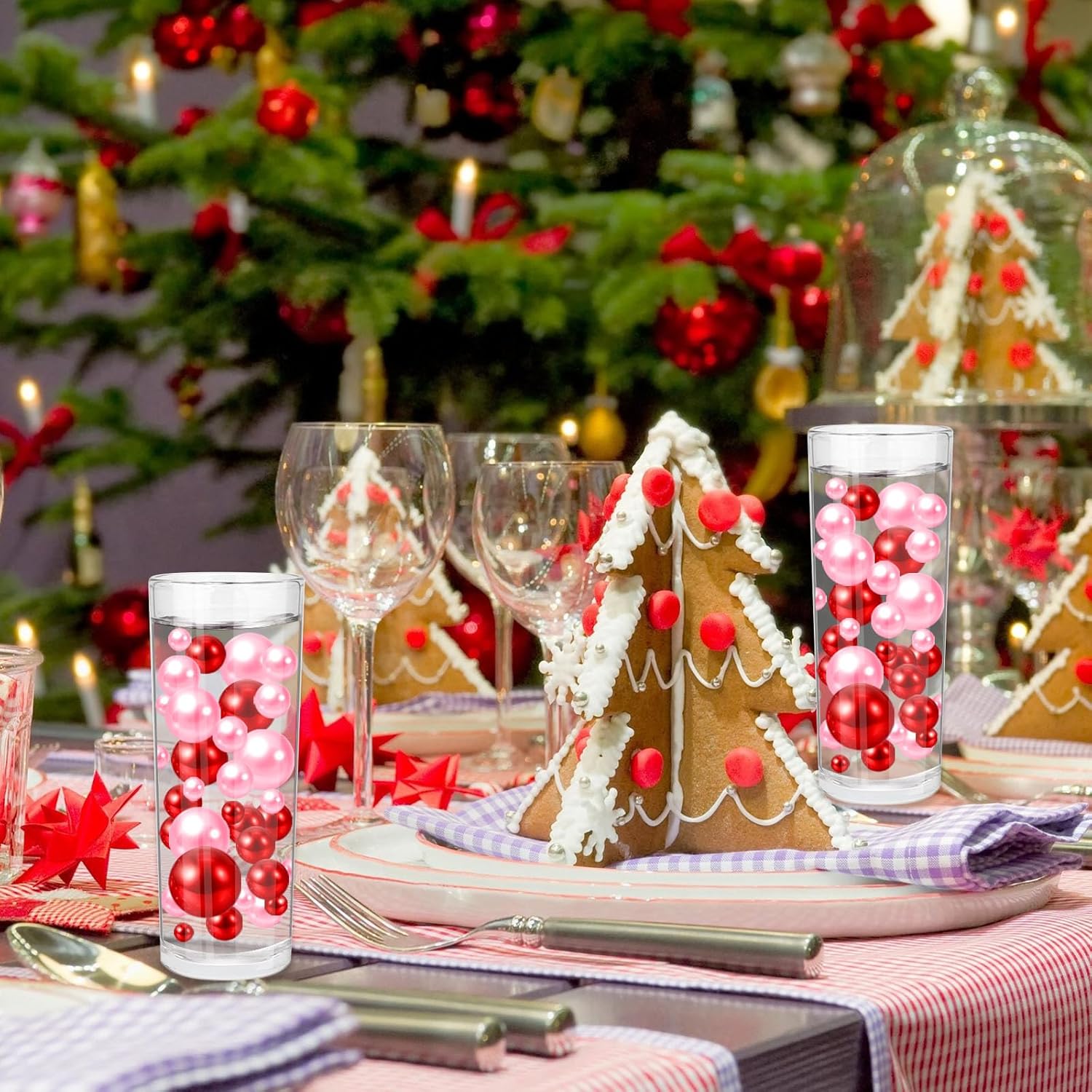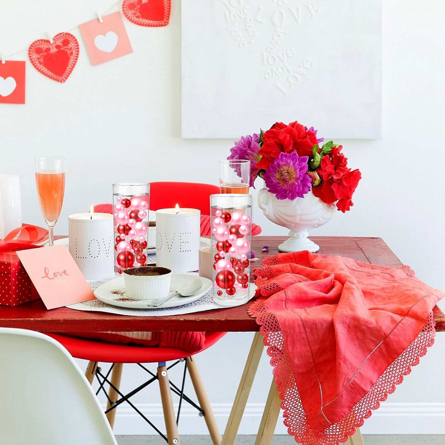 100PCS Red Pink Faux Pearls Beads for Centerpiece Vases, Vase Filler Faux Pearls, No Holes Filler Beads for Party Anniversary Valentine's Day Table Decor, 14/20/30mm