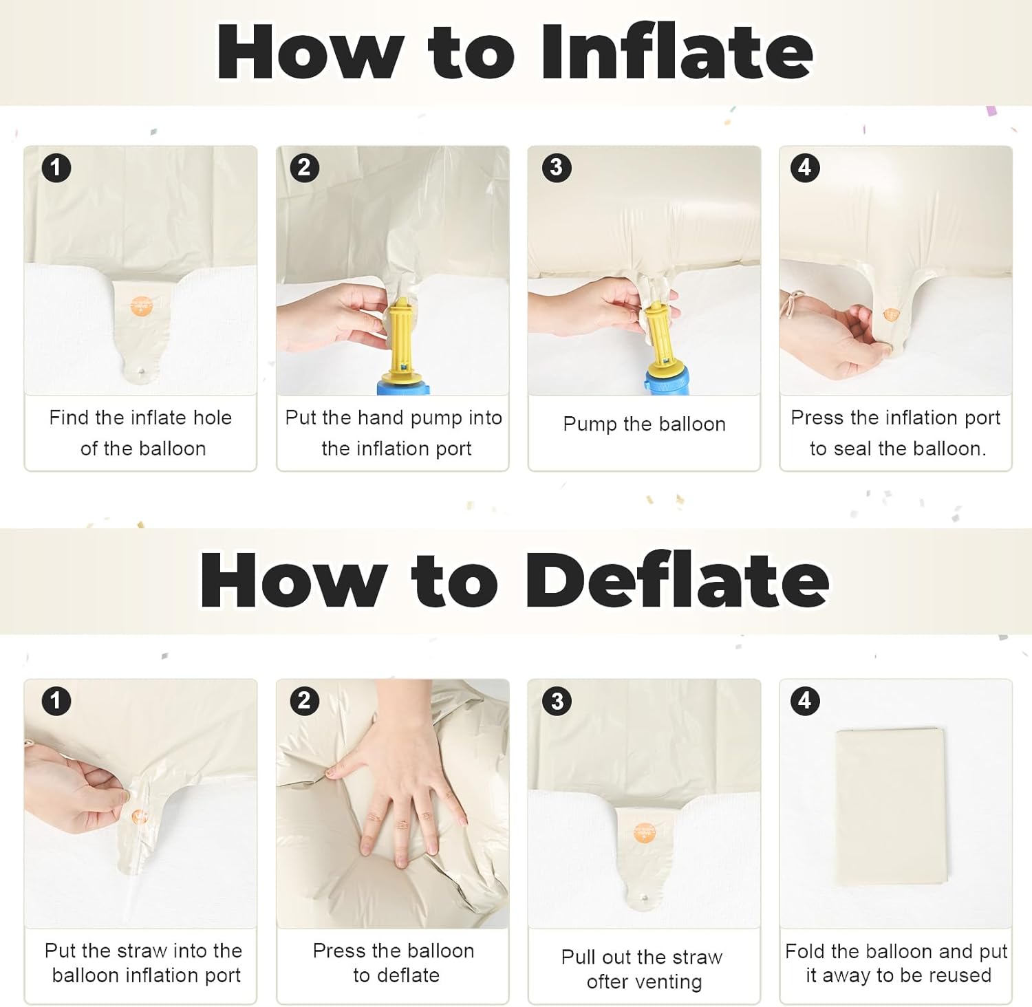 - ๐ High Quality Material: Our cream alphabet balloons are made from grade mylar material, safe, non-Toxic, high quality, durability, long-lasting, self-inflating and reusable. It can be filled with air or helium, and 90% filling is enough to hold it for a long time. After the inflation is completed, just pinch the inflation port to complete the inflation.