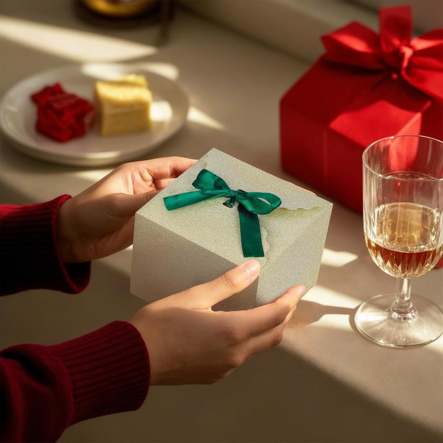 - Package Includes: 10 gold glitter folding boxes made from high-quality paper, along with 10 ribbons, easy to assemble. Each box measures 4.7" x 4.7" x 3.5"