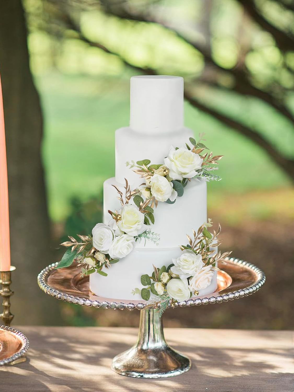 - Lush Green and Gold Accents: Each cake topper is enhanced with lush green foliage and subtle touches of gold, adding depth and dimension to the floral arrangement and creating a sense of opulence and luxury.