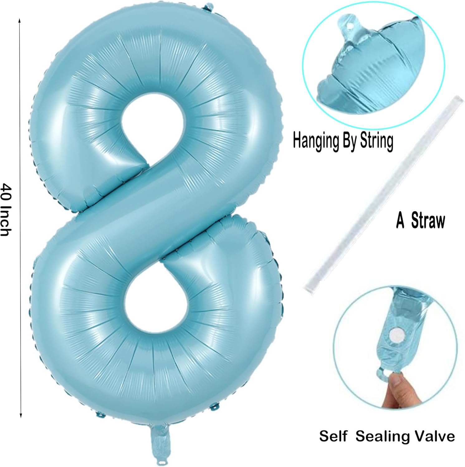 40 Inch Big Blue 8 Balloon Number Foil Helium Number Balloons 0-9 Jumbo Giant Happy 8th 18 28 Birthday Party Decorations for Boy or Girl Huge Mylar Anniversary Wedding Party Supplies (Blue No 8)