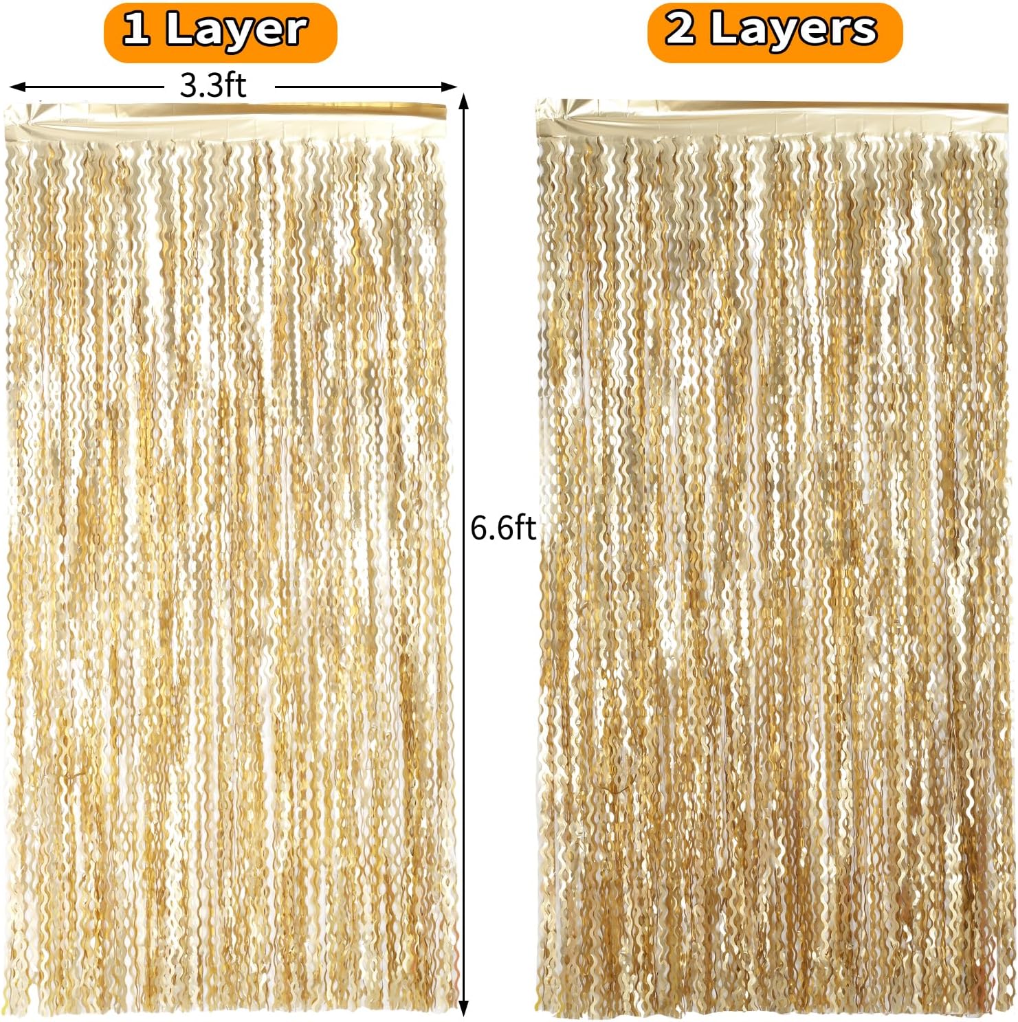 - Package Contents: 4 pack wavy foil fringe curtains,each curtain is 3.3ft x6.6ft,You can cut the metallic backdrop into the suitable length for use,Wonderful accessories for decorating doors and walls