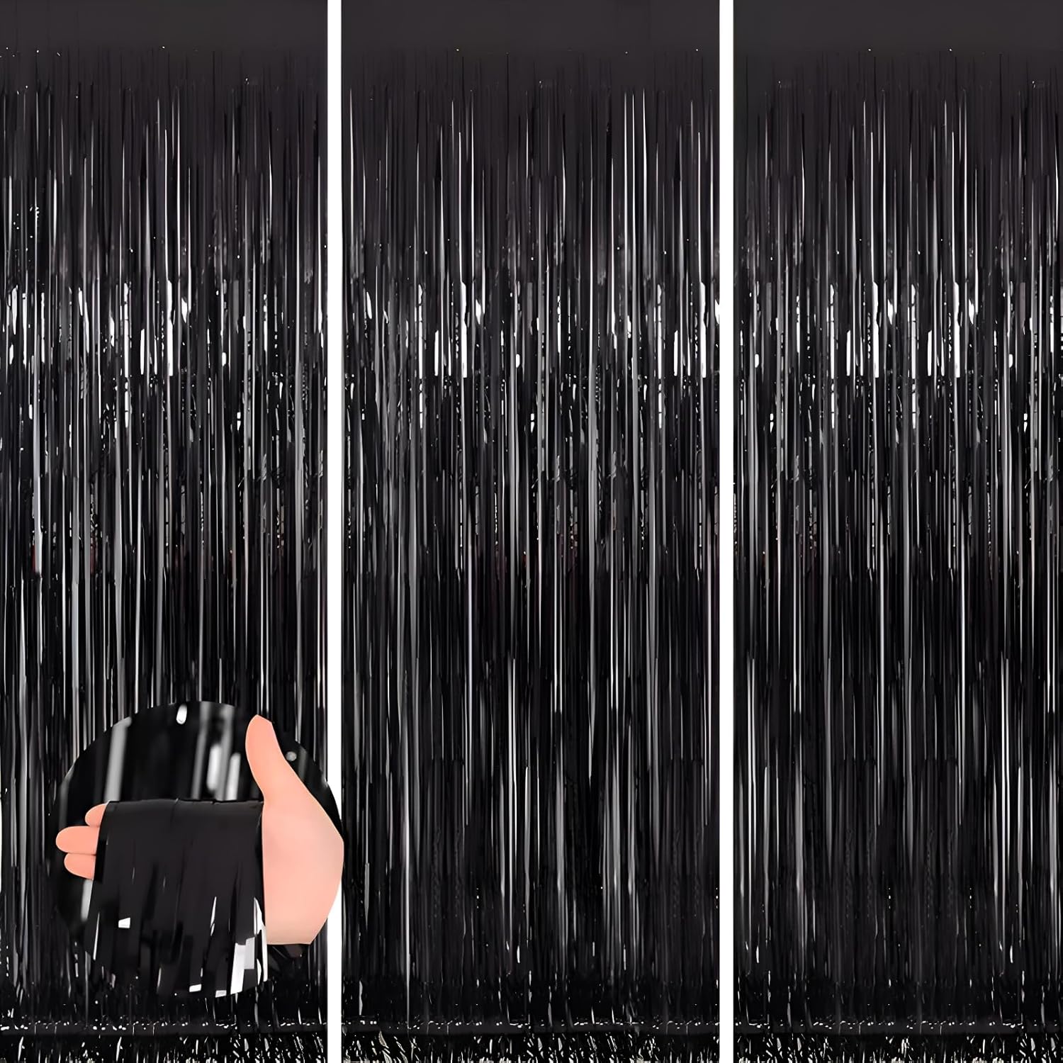 Keyali 3 Pack 3.3 * 8.3 ft Foil Curtain Metallic Tinsel Fringe Curtains Photo Booth Props Backdrop for Birthday Wedding Engagement Baby Shower Christmas Holiday Celebration Partyl,Black