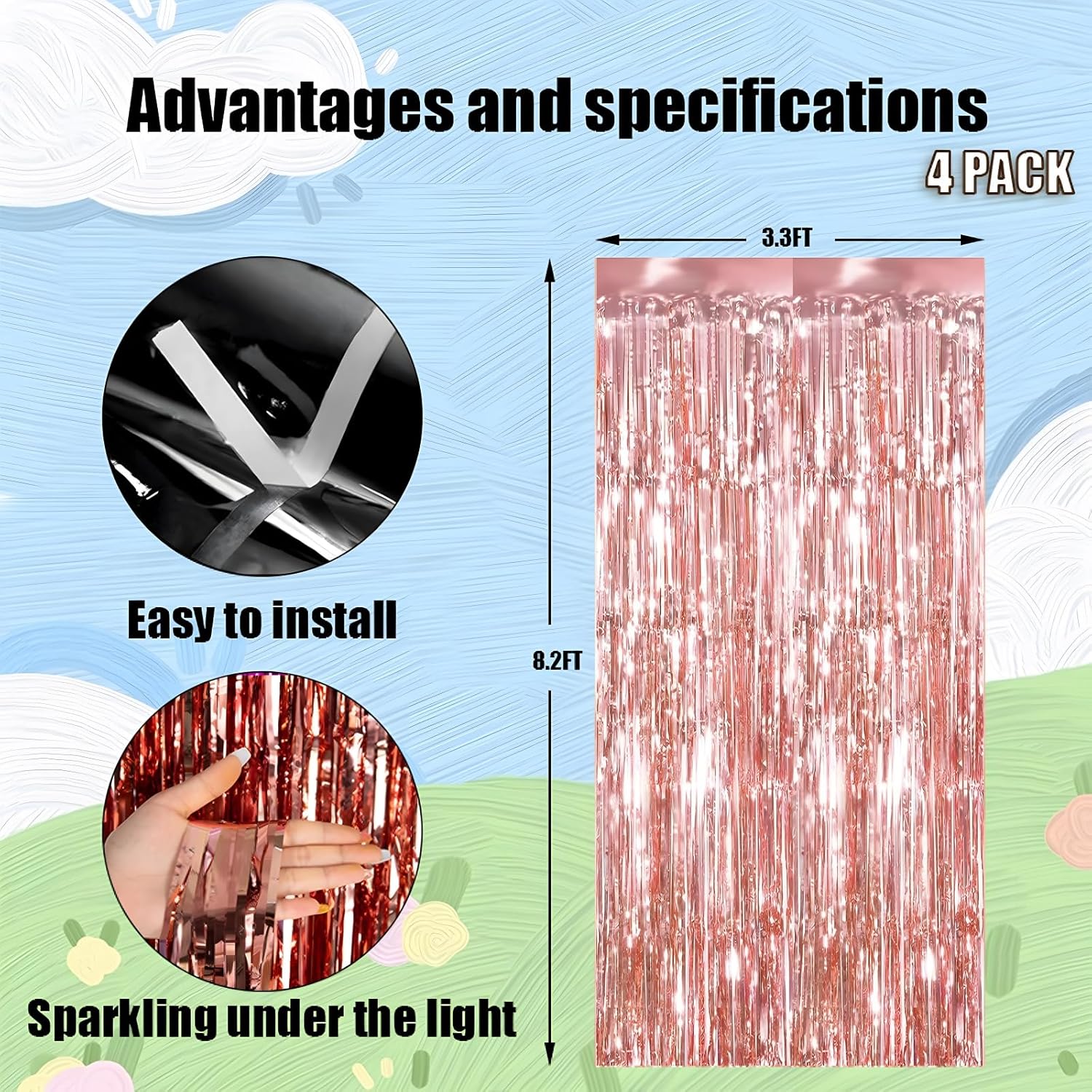 Keyali 4 Pack 3.3 * 8.3 ft Foil Curtain Metallic Tinsel Fringe Curtains Photo Booth Props Backdrop for Birthday Wedding Engagement Baby Shower Christmas Holiday Celebration Partyl,Rose Gold