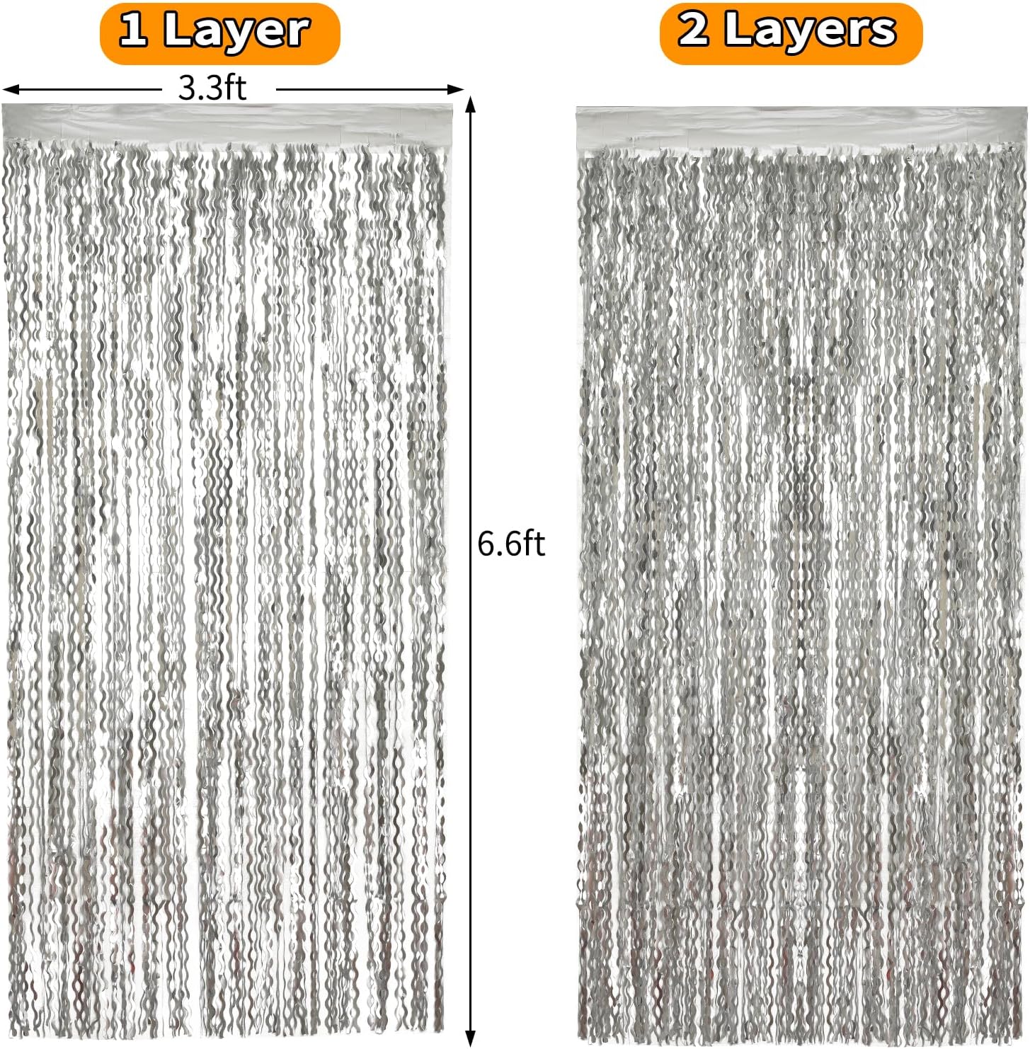- Package Contents: 4 pack wavy foil fringe curtains,each curtain is 3.3ft x6.6ft,You can cut the metallic backdrop into the suitable length for use,Wonderful accessories for decorating doors and walls