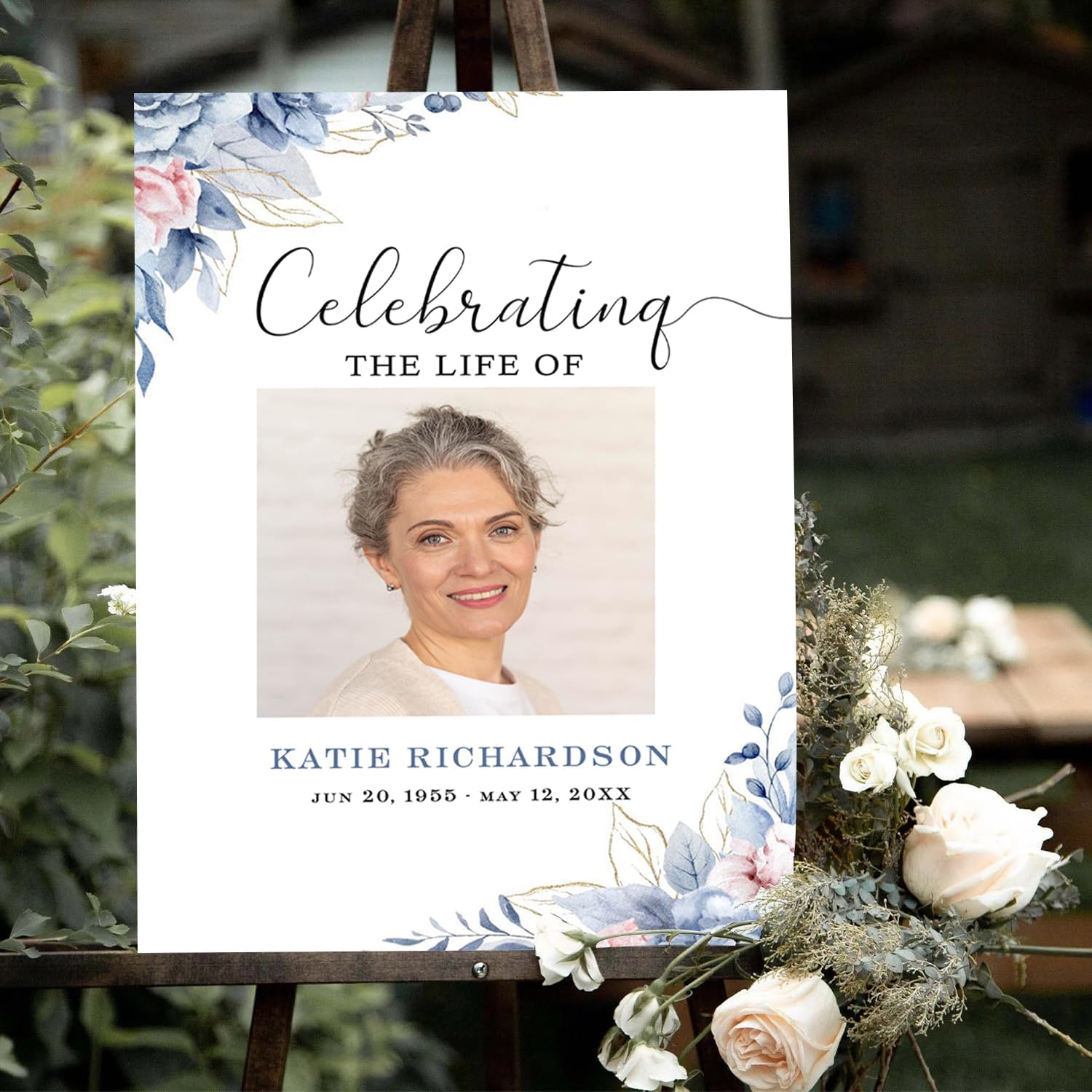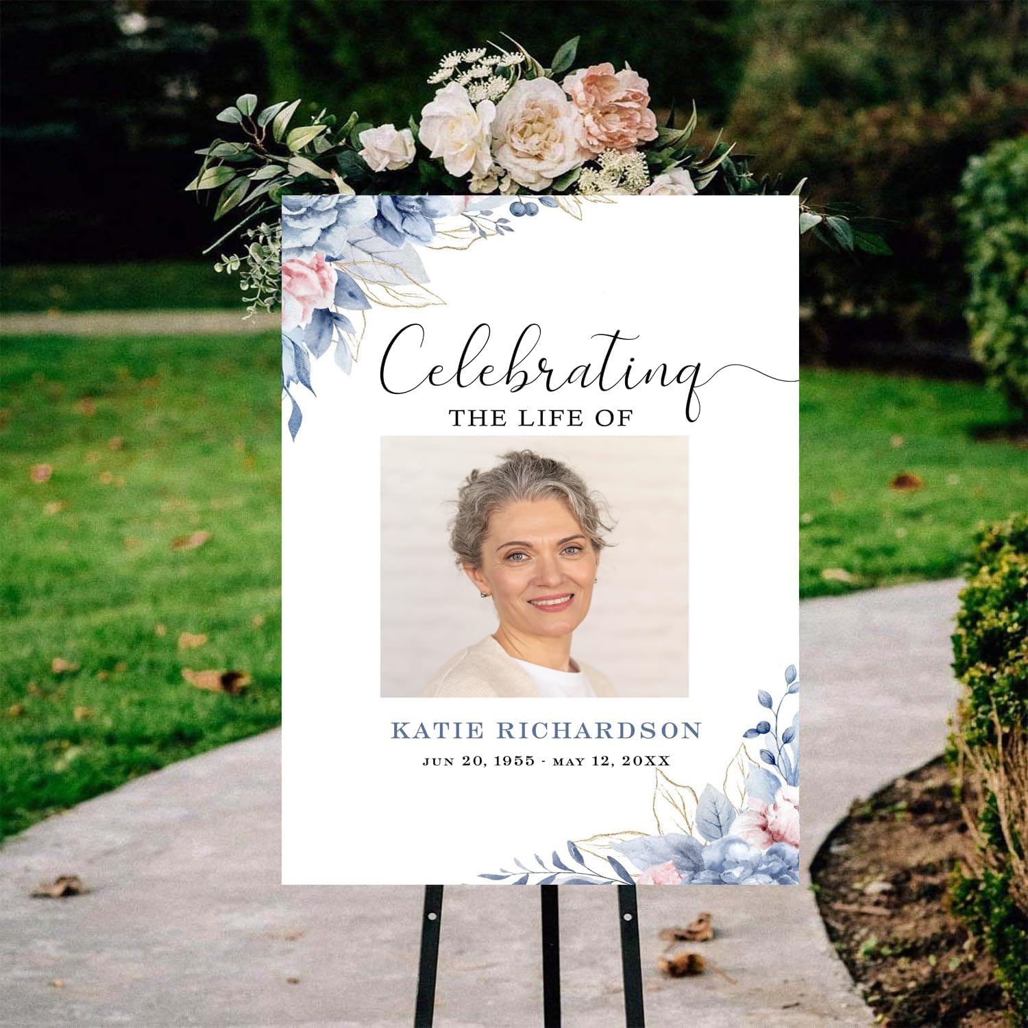 Blue Roses Memorial Sign Navy Blue Funeral Welcome Sign for Women Blue Flowers Female Memorial Sign Celebration of Life, Funeral Décor, Funeral program