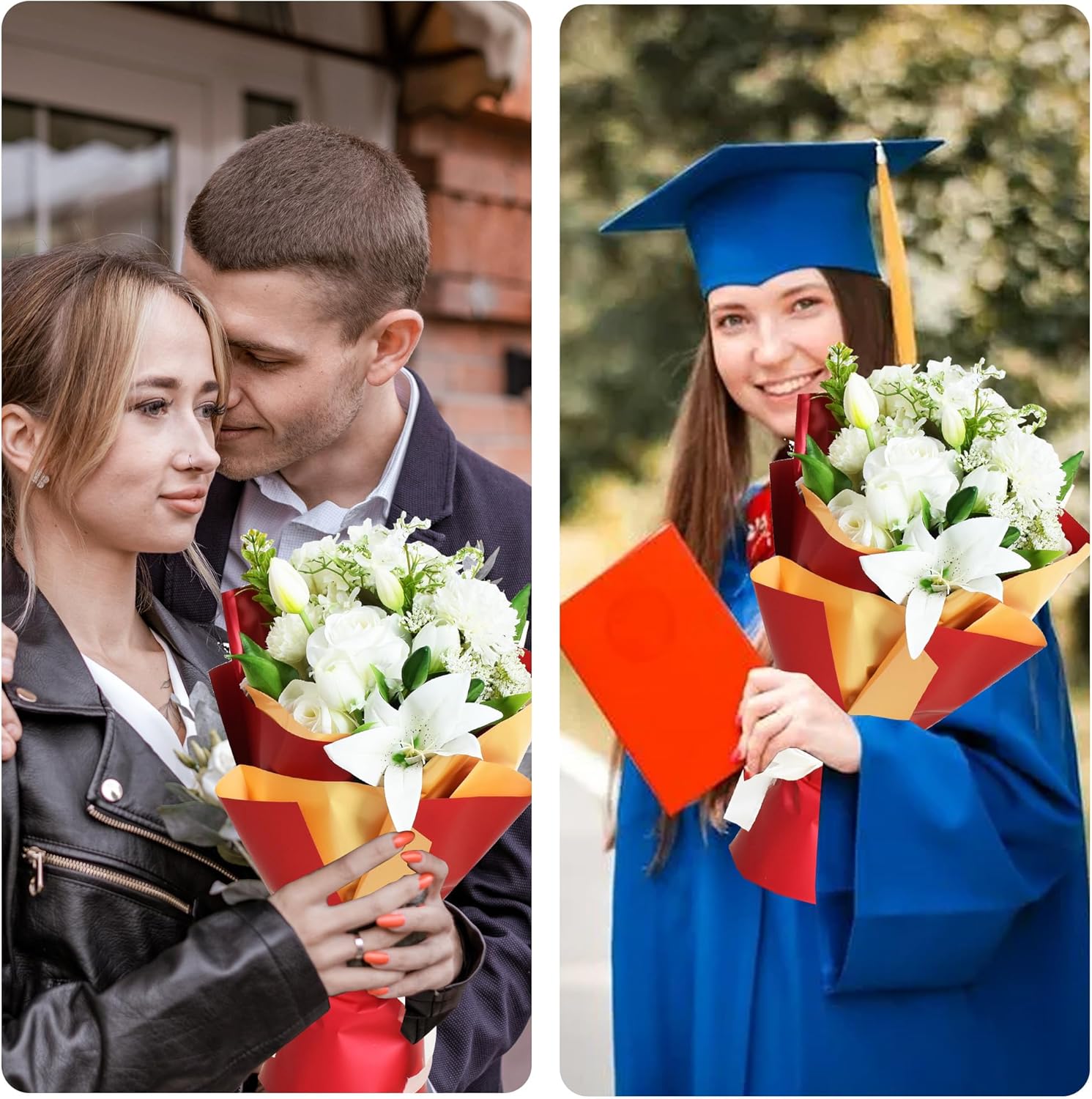 - 【Quality】The double side color floral wrapping paper is Made of high-quality safe durable and waterproof plastic,so do not worries about water when you wrap for flowers,exquisite dyeing and printing, flower paper does not fade.