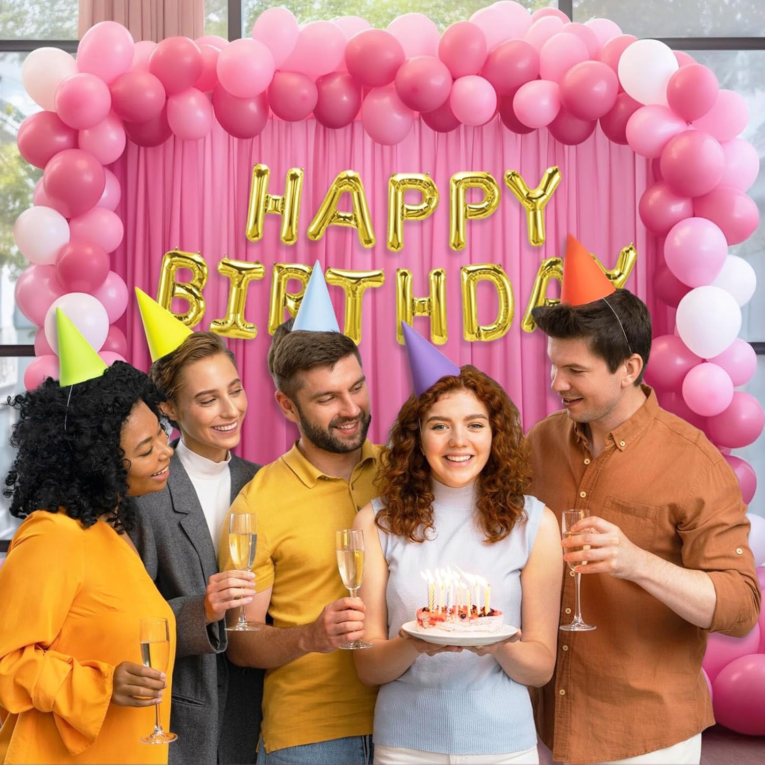 10 x 10 Feet New Pink A Backdrop Curtain for Partie, Background Curtains for Photoshoot, Birthday, Wedding, Mardi Gras, Easter, Mother's Day Party Decorations 5Ft x 10Ft, 2 Panels