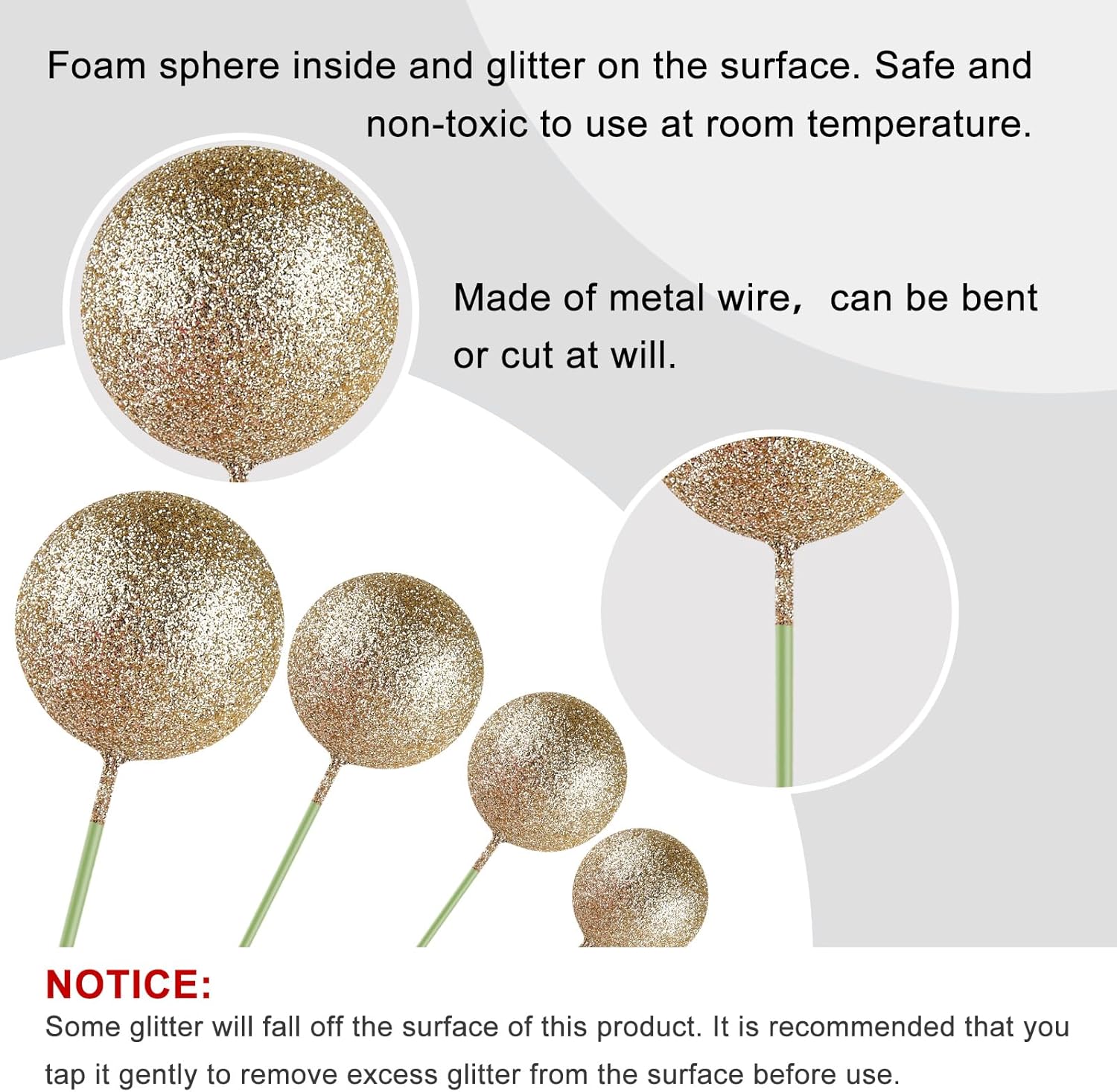 - Package includes: 20 pcs glitter champagne gold ball cake decorations. The diameter of these ball cake toppers are 0.79 inch/ 2 cm, 0.98 inch/ 2.5 cm, 1.18 inches/ 3 cm, 1.57 inches/ 4 cm, 5 pieces of each size.