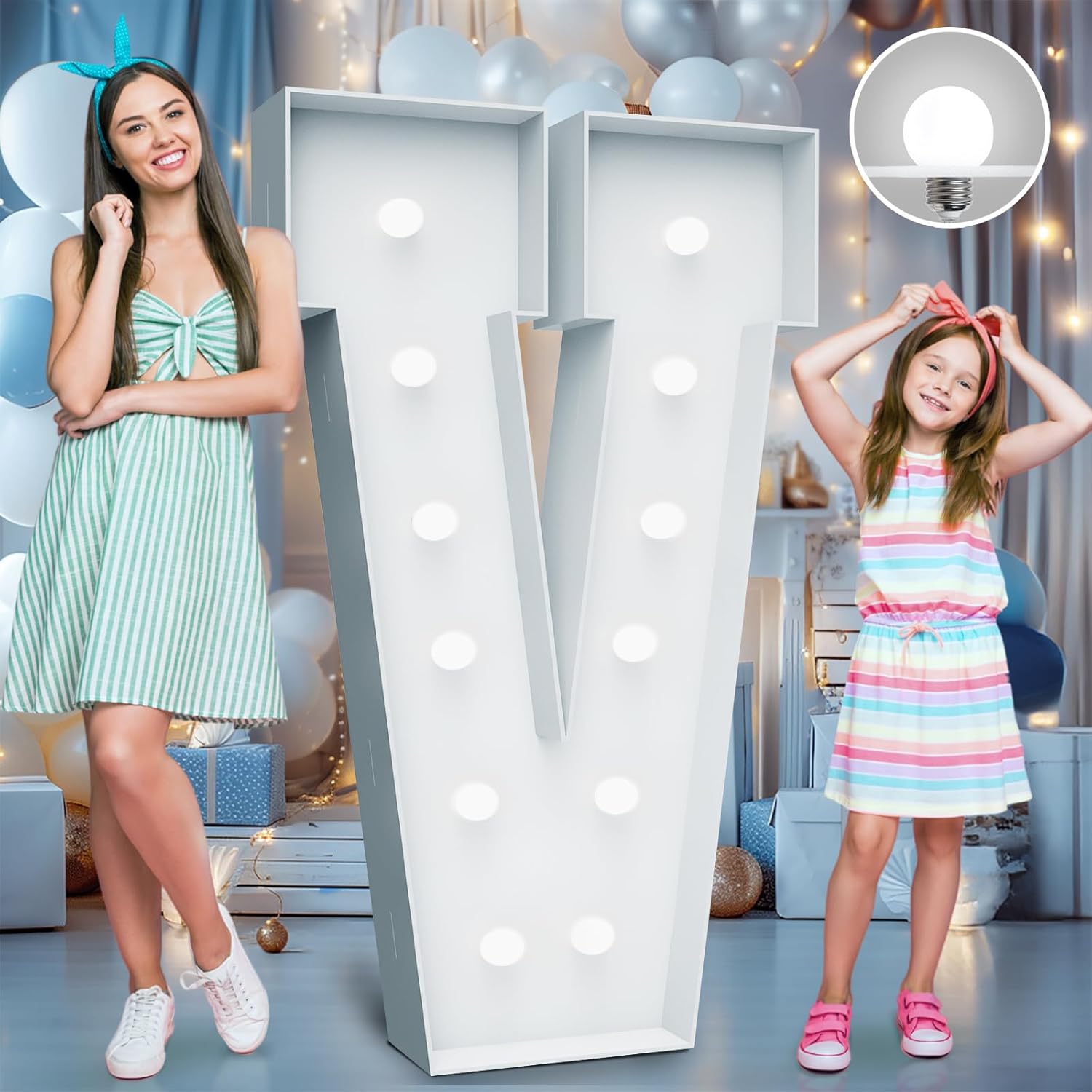 4FT Marquee Light Up Letters - Cool White Light Up Letters V with Fixed Water Bag, Party Decoration Large Marquee Light Up Letters can Be Used for Wedding Decoration, Birthday Party Decoration