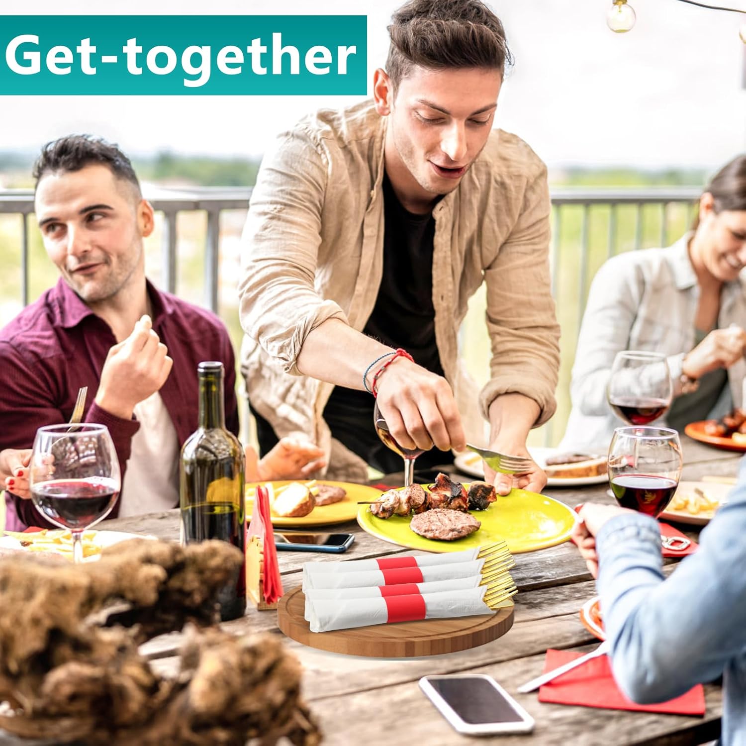 - Stylish Silverware Wraps Bands: In addition to securing your napkins, these bands also serve as stylish silverware wraps. They add a decorative touch to your flatware, making it more visually appealing and adding an extra layer of sophistication to your table setting.