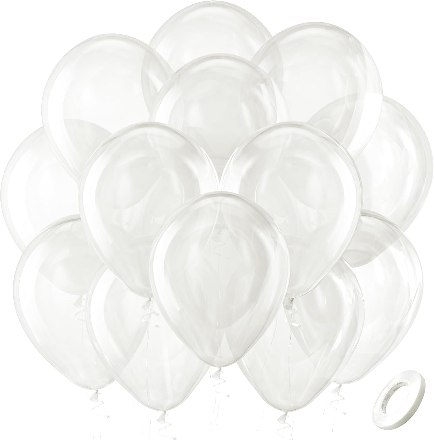 - ăSet Includesă- Each sets contains 100pcs clear party balloons of 12 inches and 1pcs white ribbon (33 feet total). The right amount quantity and most suitable color for each party decoration.