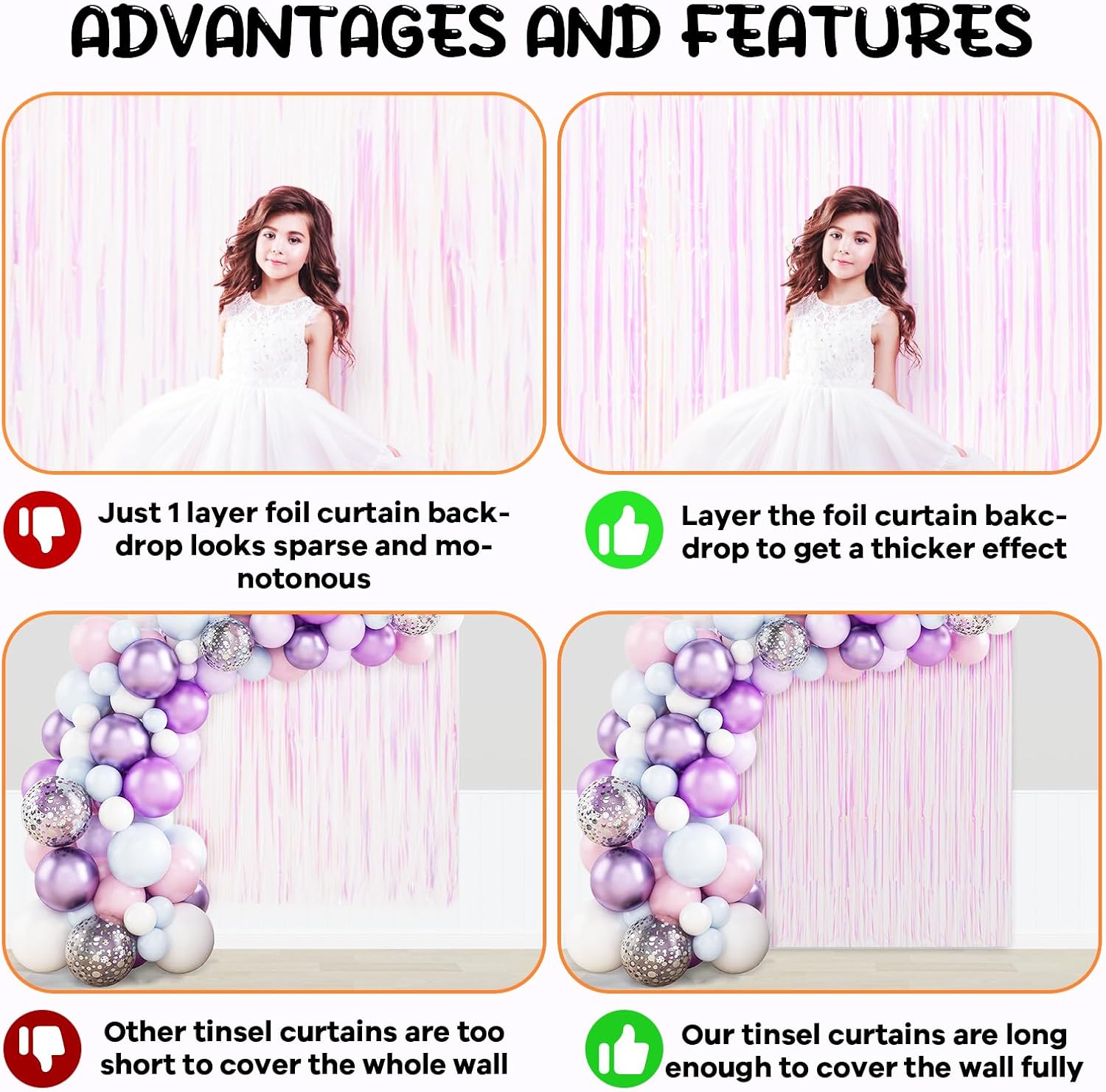 - 【Eye-Catching Design】Crafted from top-quality materials, these iridescent foil fringe tinsel backdrops boast vibrant colors and a shimmering effect that reflects light beautifully. Your friends will be mesmerized by the captivating atmosphere these curtains create.