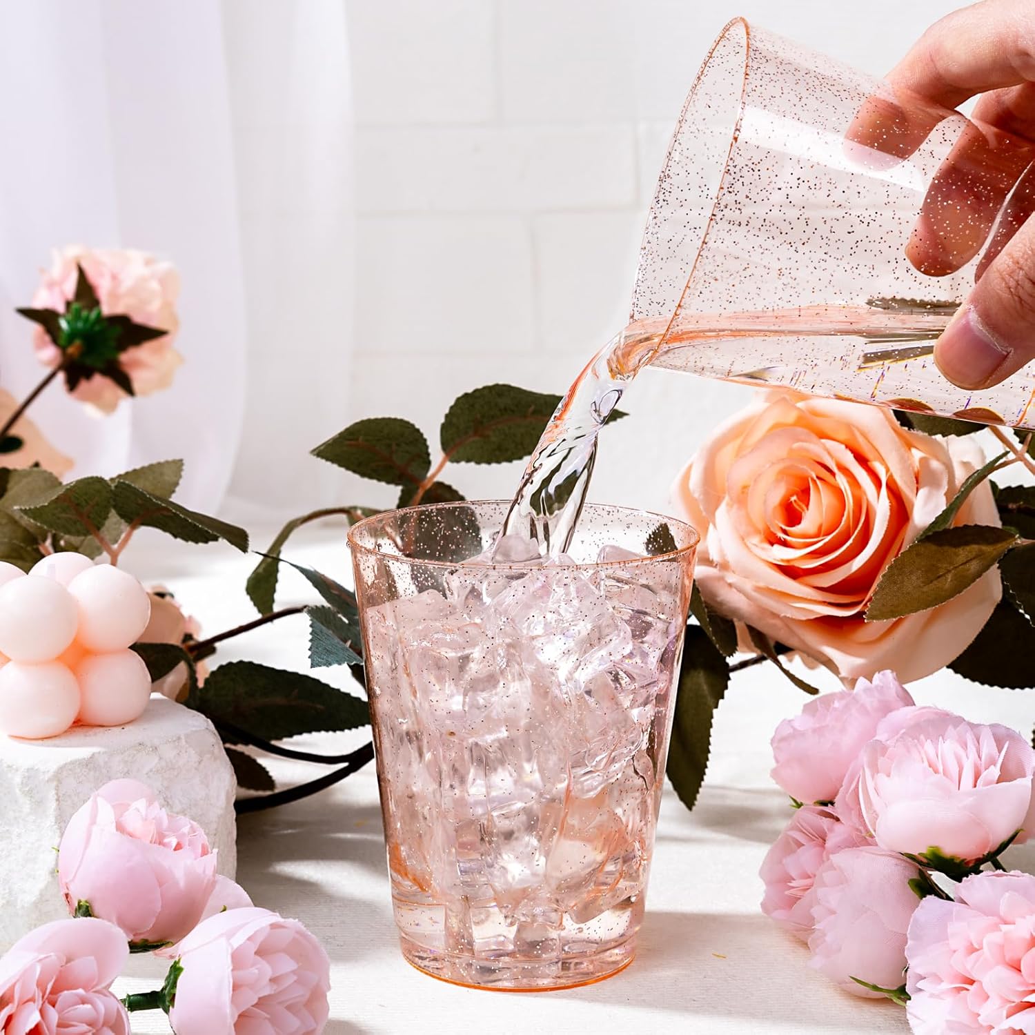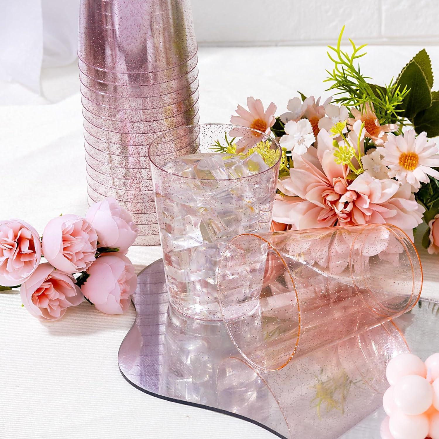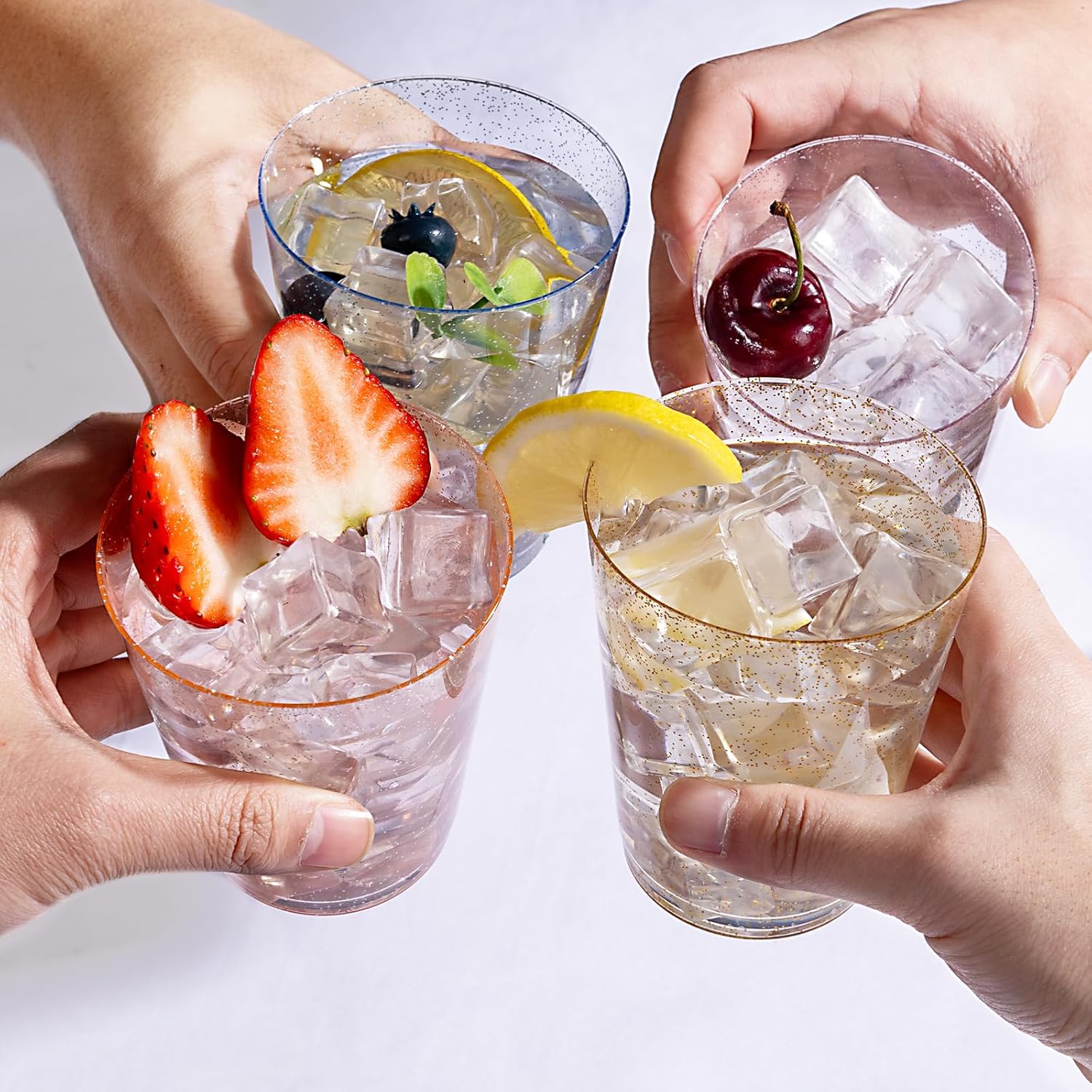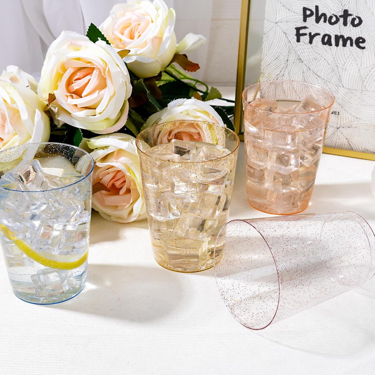 - GREAT VALUE PACK: 100 pack 10oz glitter cupsIncludes:25 gold glitter cups 25 blue glitter cups 25 pink glitter cups 25 rose glitter cups, you’ll have more than enough to supply for a large gathering, very suitable for family, event or commercial use. Enjoy your event without having to worry about the mess after the party.