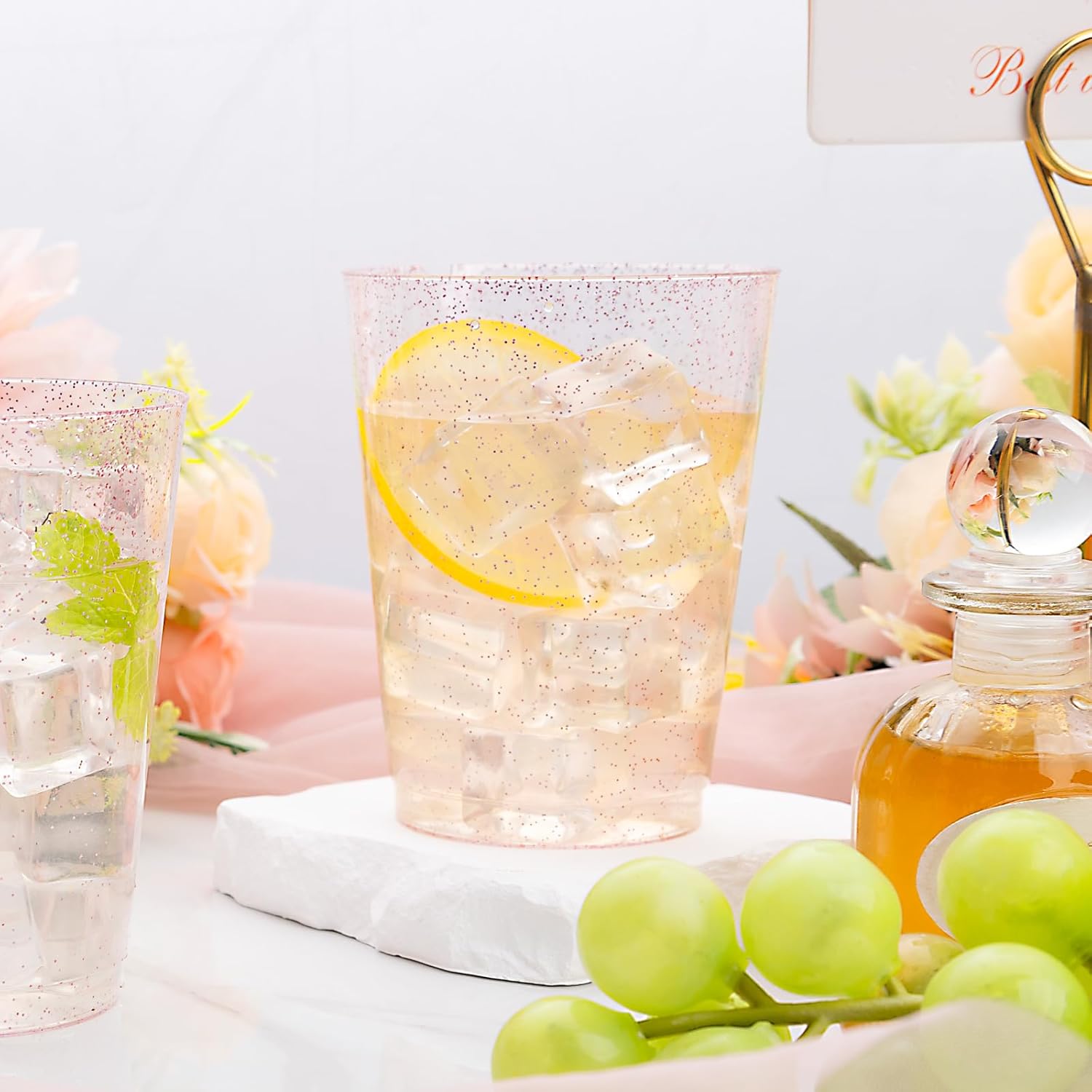 - Elegant Design: These 10oz pink plastic cups body is full of golden sparkles and is ideal for any special day include Mothers Day ,Thanksgiving, Christmas and so on. This disposable cups with rose gold glitter can be matched with any color of the drinks to make your party elegant and refined.