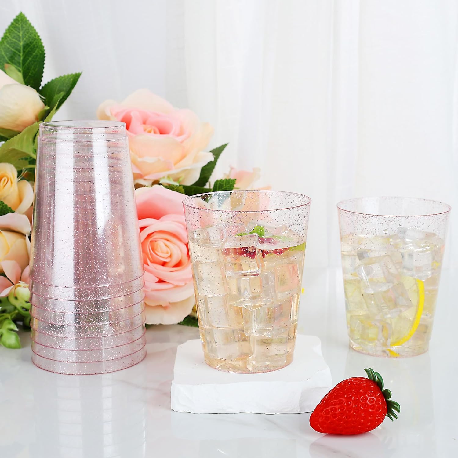 - Excellent Quality: Made of durable high quality 100% food grade BPA free non-toxic heavy duty plastic. These 10 oz rose gold glitter cups are protected with a box of hard materials that are not easily scratched or broken.