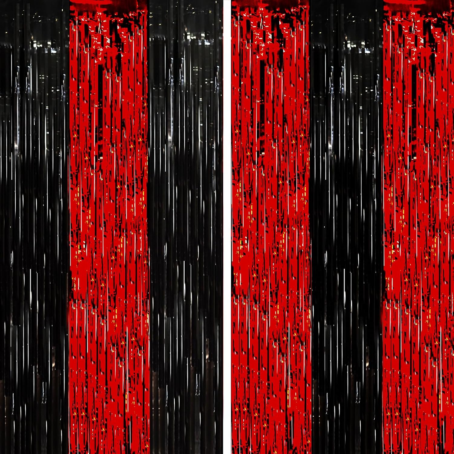- Stunning Decorative Set: You'll receive 2 pcs black and red foil fringe backdrop curtains, each measuring 3.28 ft (wide)×6.56 ft (drop). Enough length foil fringe curtains backdrops are perfect for the door or wall to create an impressive decoration