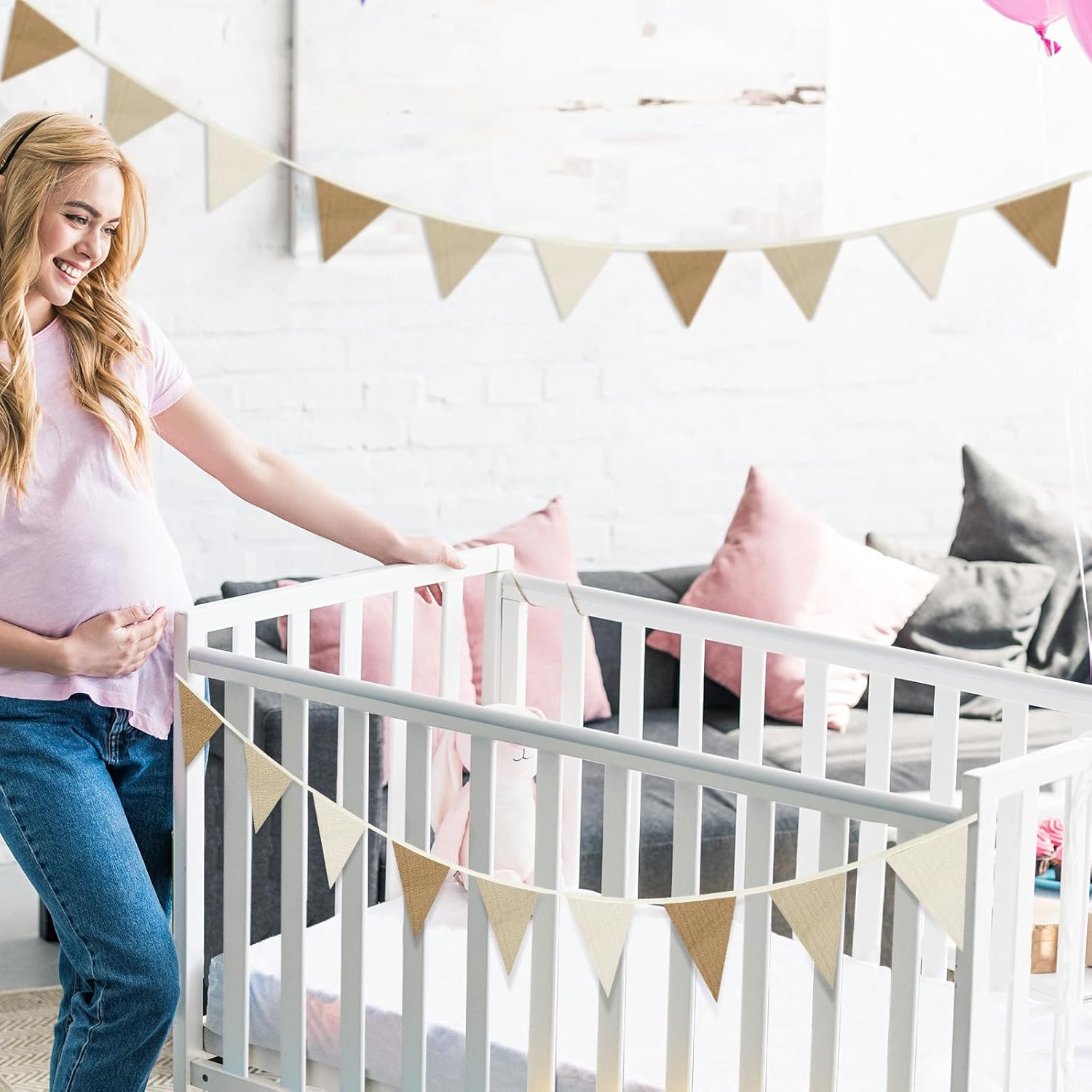 Oudain 15.5 ft Pennant Banner Flags, 2 Pcs Nursery Garland Triangle Bunting Flag Baby Banner for Nursery Decor Baby Birthday Boho Wedding Shower Party Event, Each 7.75 ft(Simple Color)