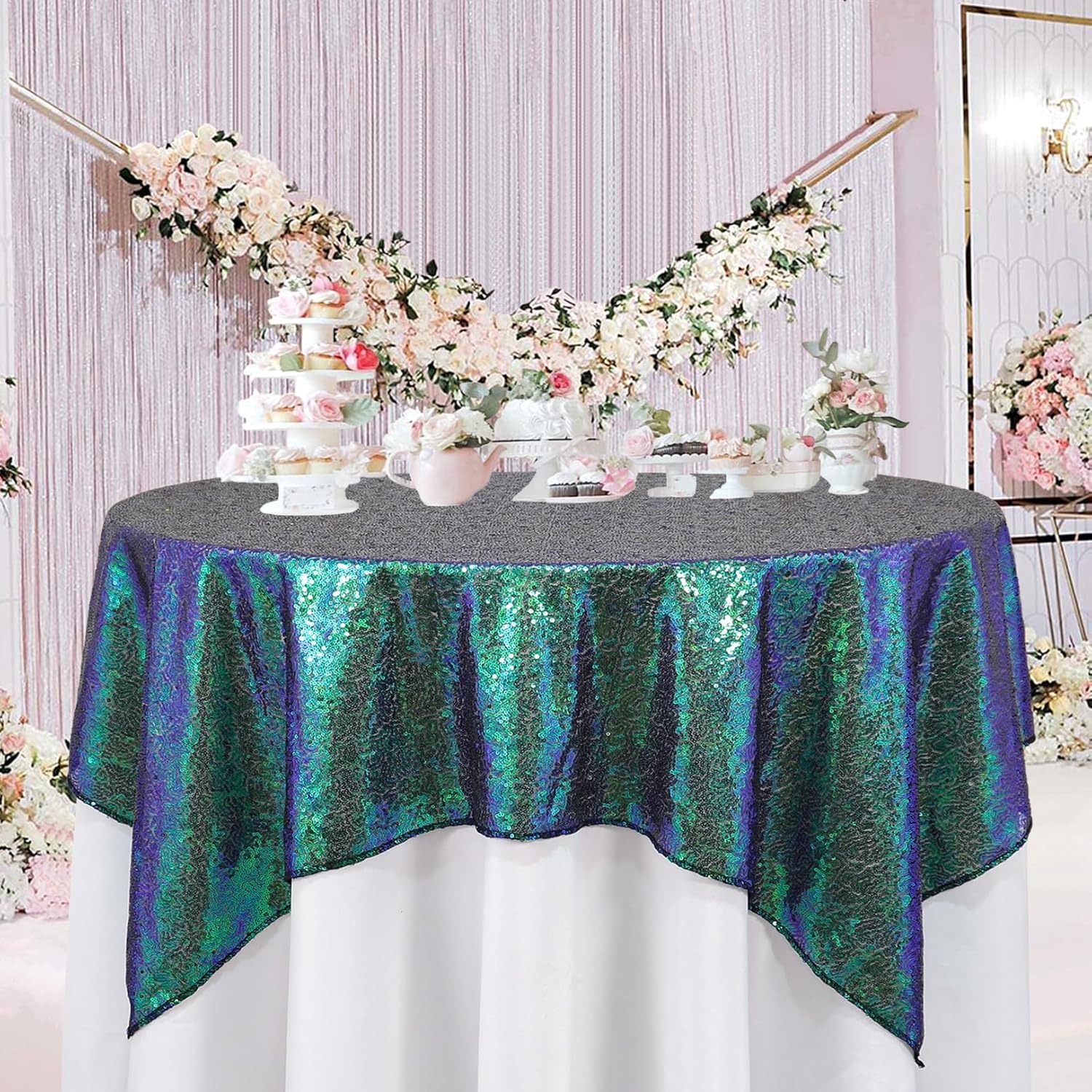 - ❤ SIZE OF SEQUIN TABLECLOTH : 1pc 36x36 Inch Iridescent Green Sequin Tablecloth Table Linen, this small square tablecloth is fit for small round tables under 36''