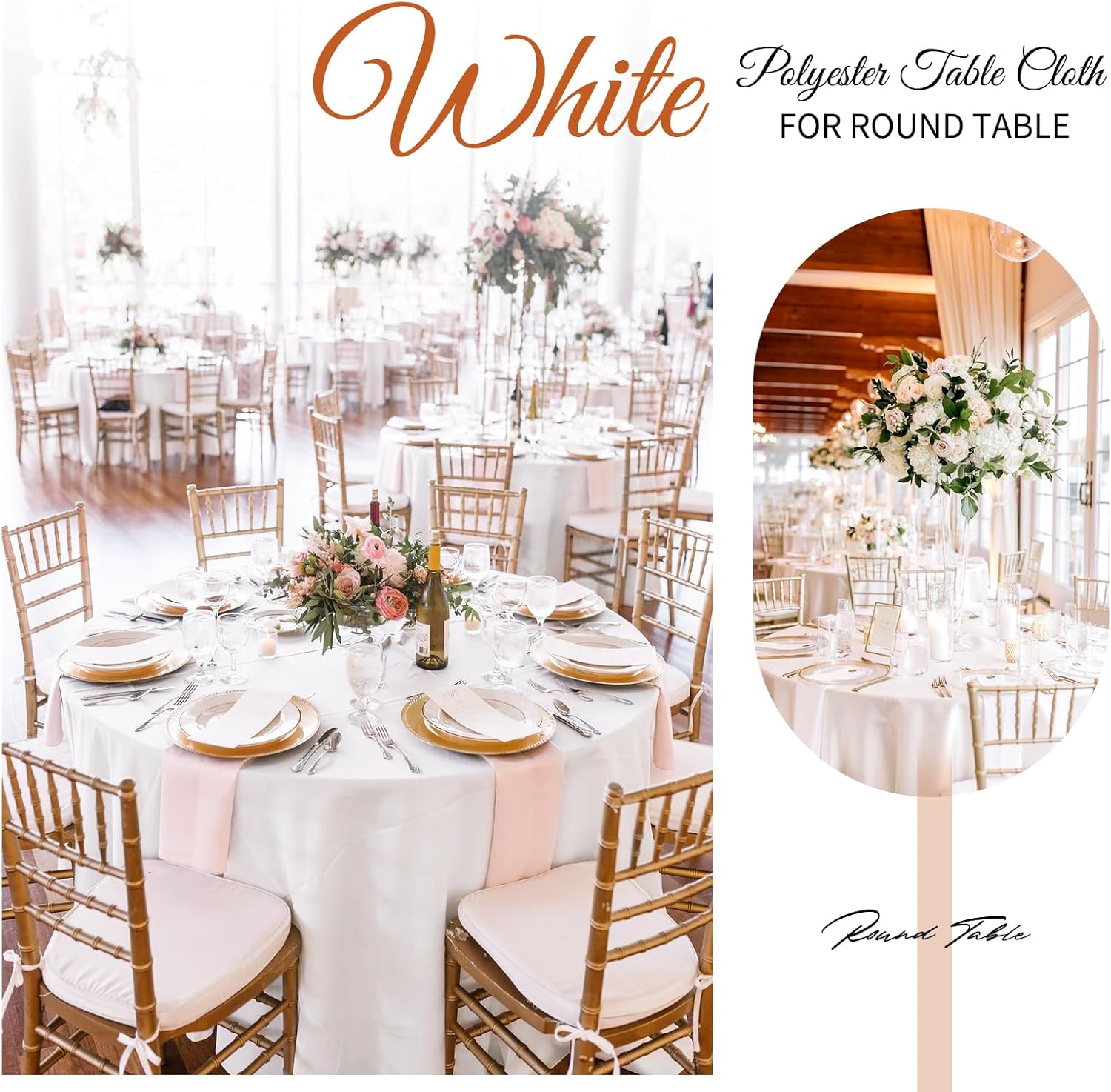 - 【Size】This white polyester table cloth diameter is 108 Inch, for standard 6ft(72inch) round table, providing 18 inch drop, If your round table is 8ft(96inch), providing 6 inch drop. We can provide the following sizes:Rectangular: 60" x 102", 60" x 126", 70" x 144", 90" x 132",90" x 156". Round: 60", 90", 108", 120".Please measure the size of your table before purchasing.
