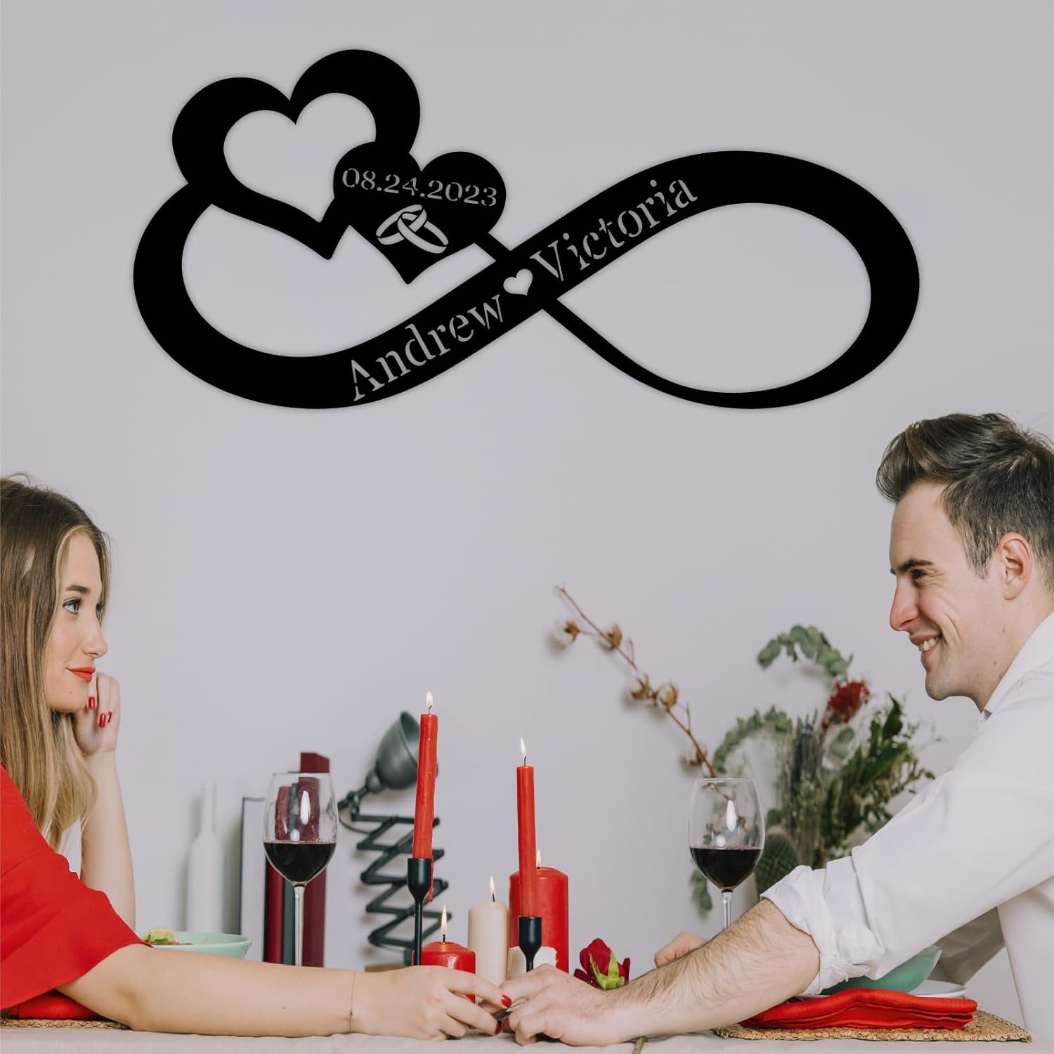 Infinity Heart Metal Wall Decor, Unique Infinity Heart Wall Decor Love Sign Plaque Steel Art Geometric Wall Decor Set Cut Out for Outside (Infinity Heart Love Sign)