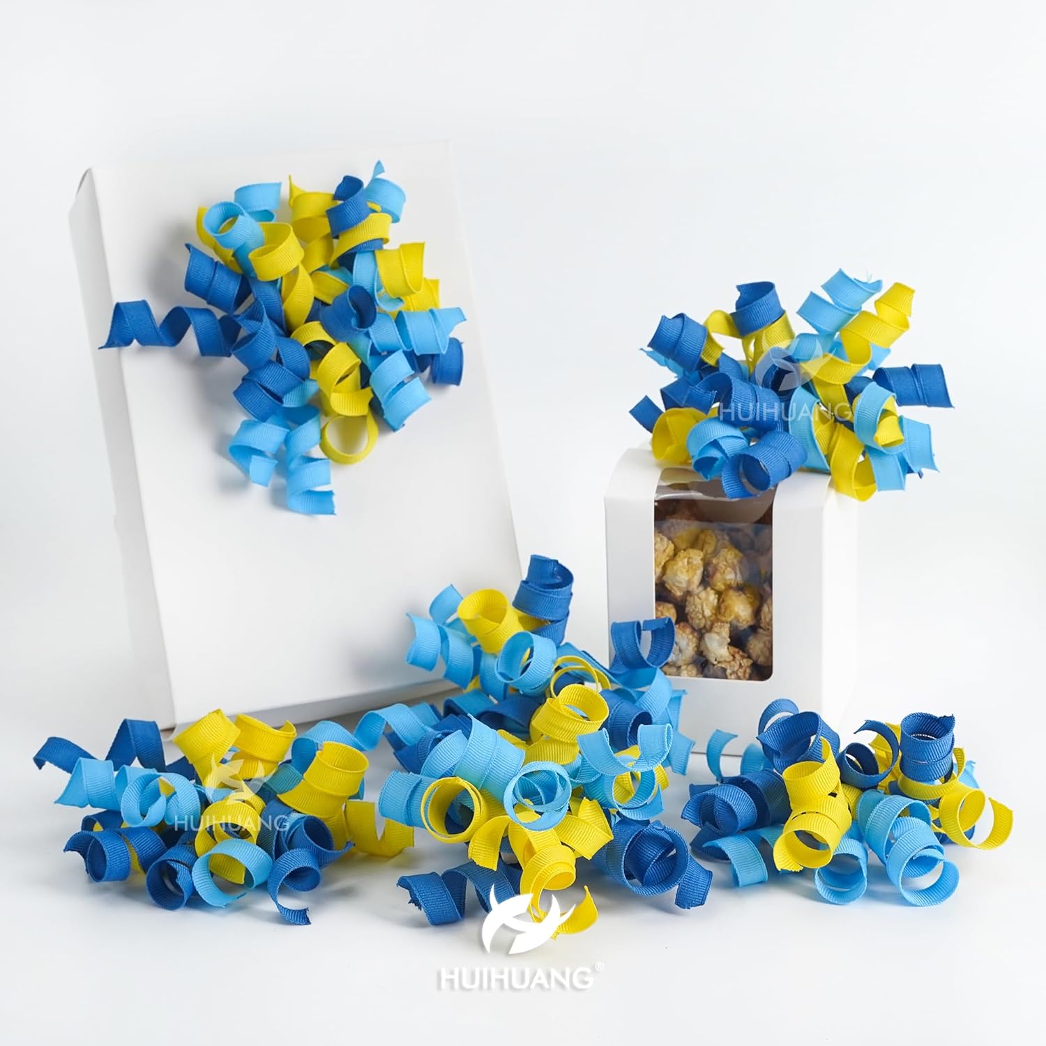 - SIZE & PACK: Each package contains 6 pcs baby boy shower curly bows are made of 12 strands of 3/8"(9mm) wide grosgrain ribbon that measure about 4.5~5" x 4.5~5"