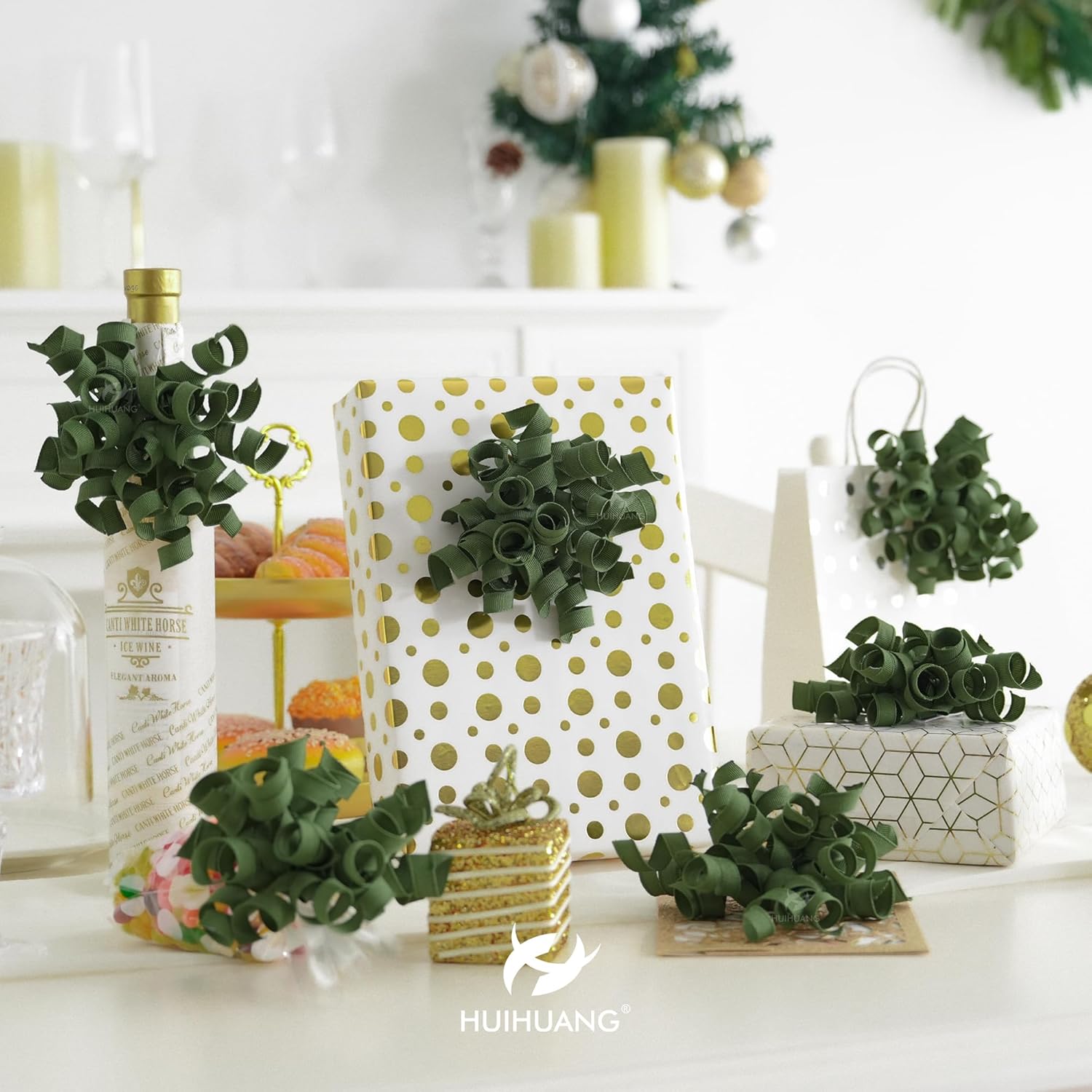 - SIZE & PACK: Each package contains 6 pcs moss green curly bows are made of 12 strands of 3/8"(9mm) wide grosgrain ribbon that measure about 4.5~5" x 4.5~5"