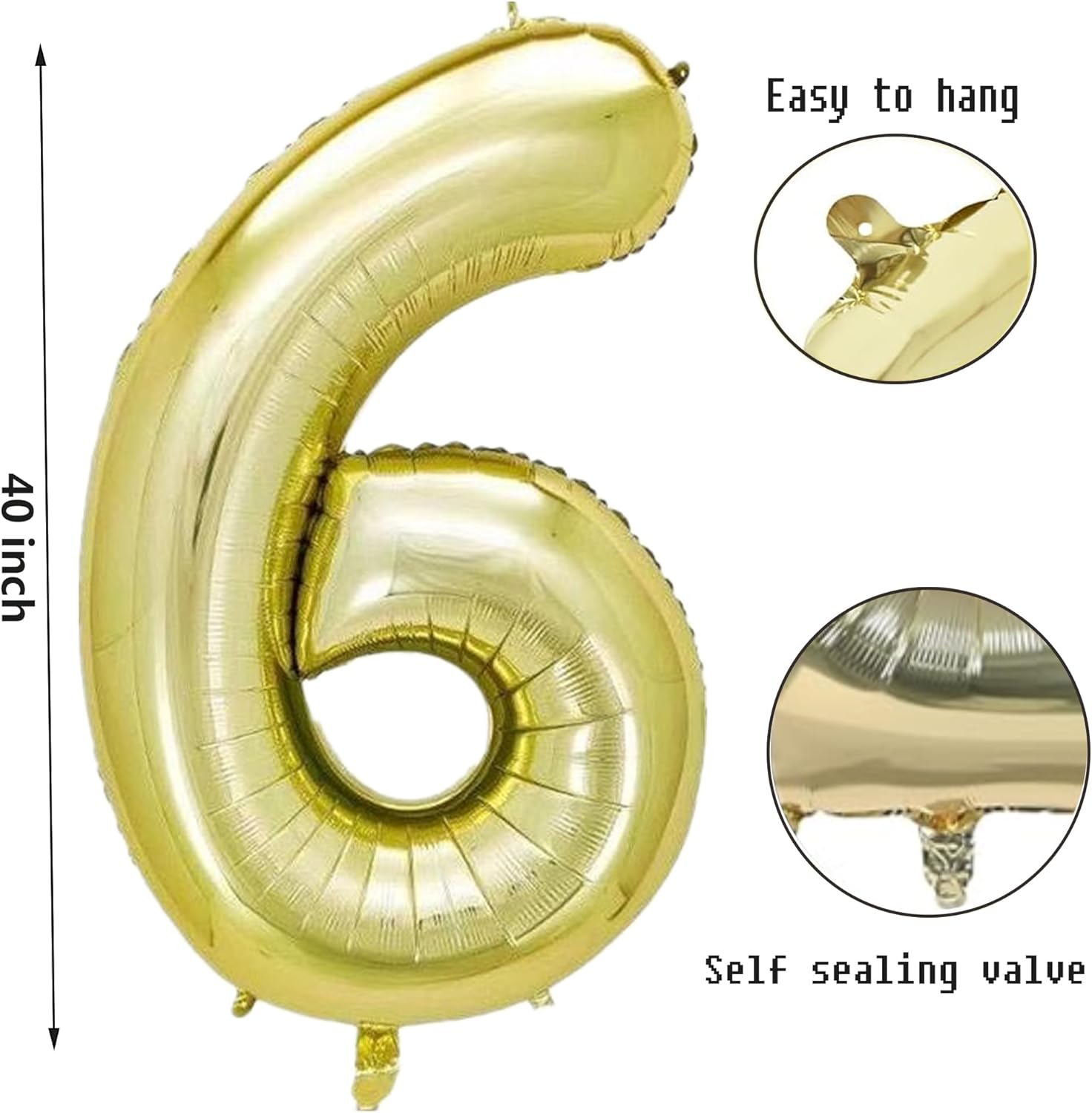 40 Inch Numbers 6 Light Gold Large Balloon Digital 6 for Birthday Party, 0-9 Birthday Party Decorations,Foil Mylar Big Number 1 Wedding Graduations Photo Shoot Decorations(Number 6)